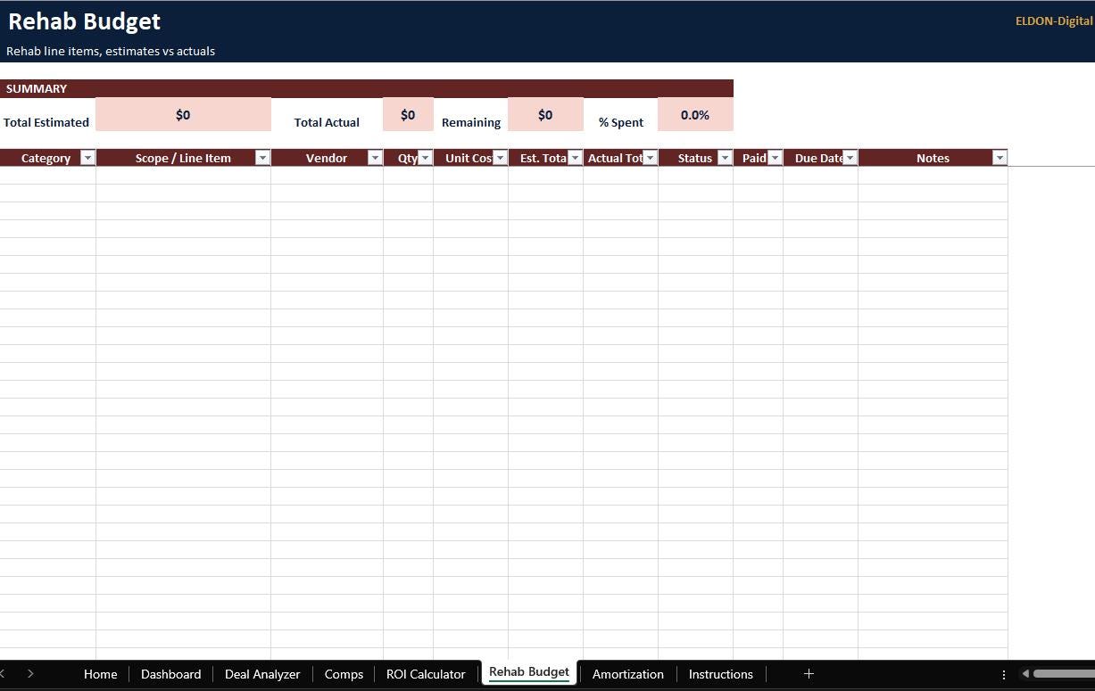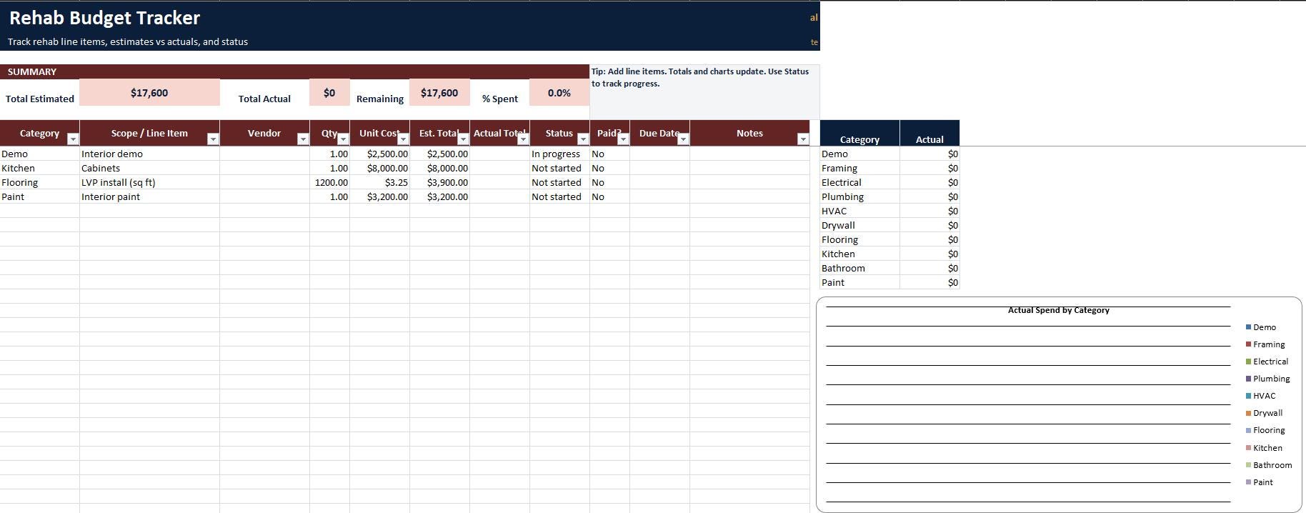 3) Rehab Budget Tracker