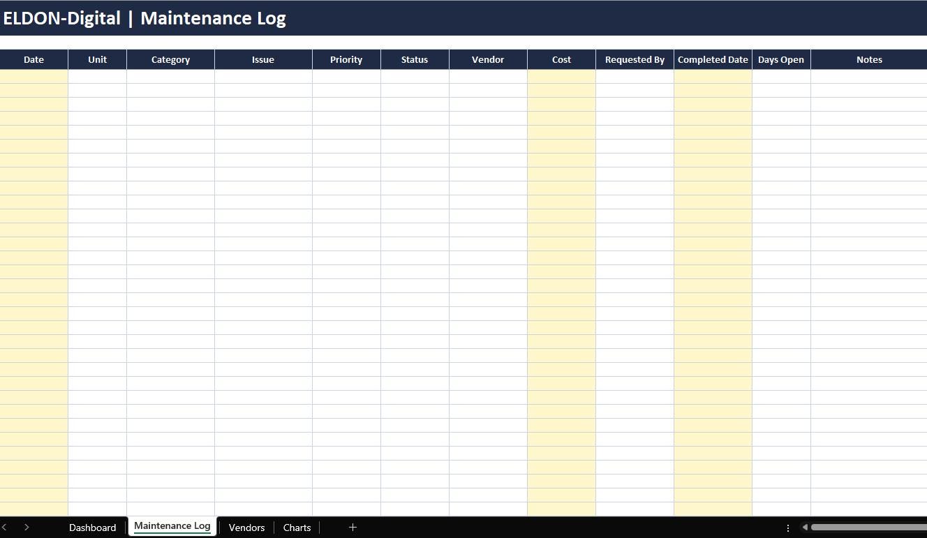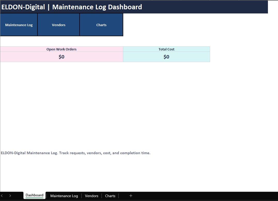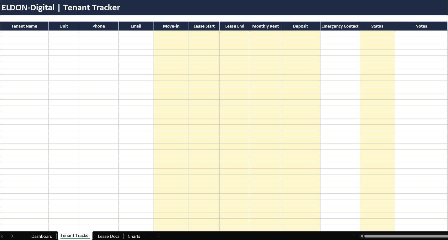 Manage your rental properties like a pro with the ELDON-Digital Rental Management Spreadsheet Suite, a complete, organized, and colorful system built for landlords and property managers. Track tenants, rent, payments, maintenance requests, and full income and expense bookkeeping in one easy workflow, with dashboards and charts that update automatically.