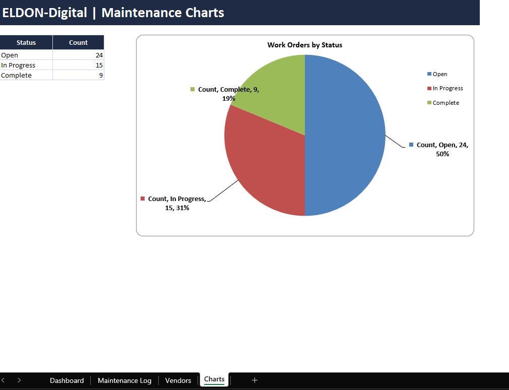 • Vendor directory + charts (Open vs In Progress vs Complete)