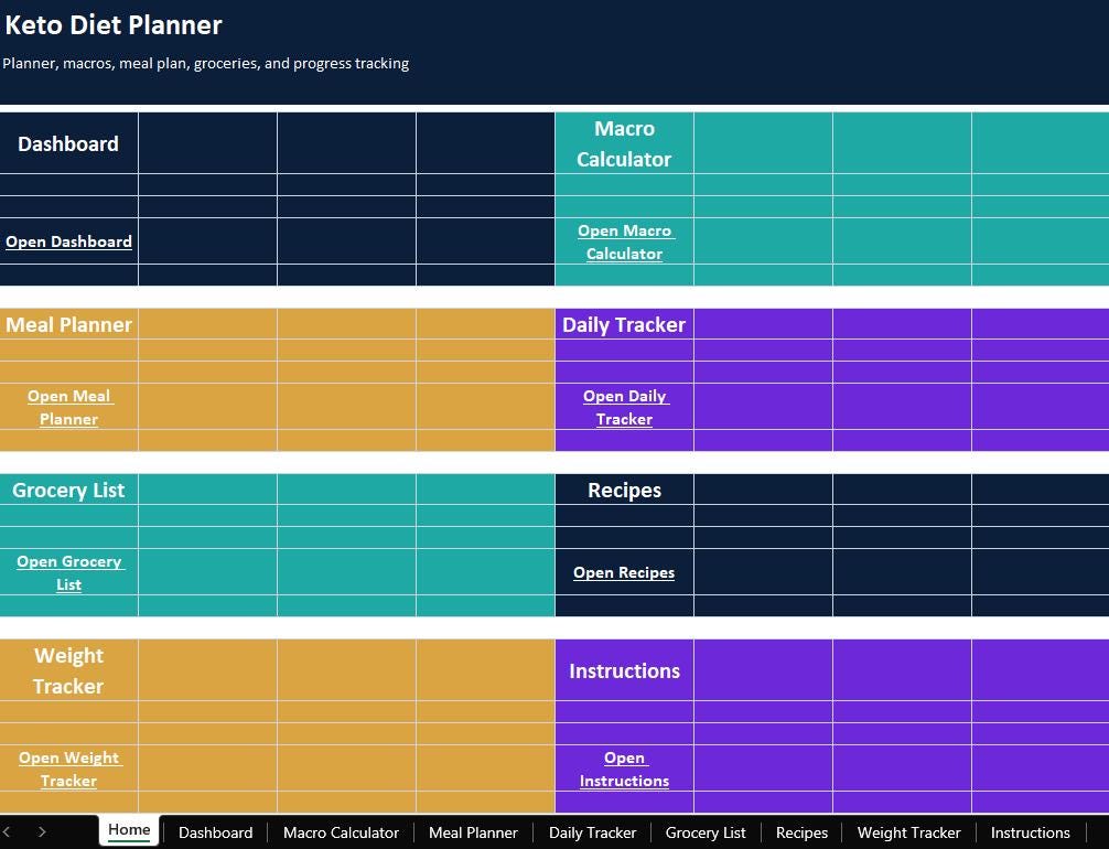 • 1 Keto Diet Planner spreadsheet file for Excel