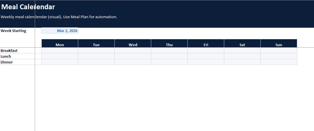 1) Meal Calendar (Weekly View)