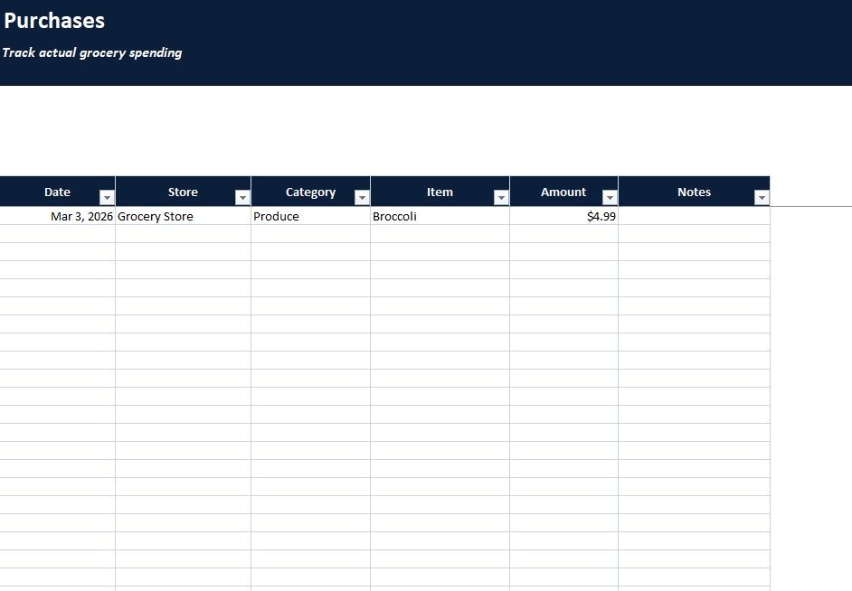 • Log actual grocery trips and spending