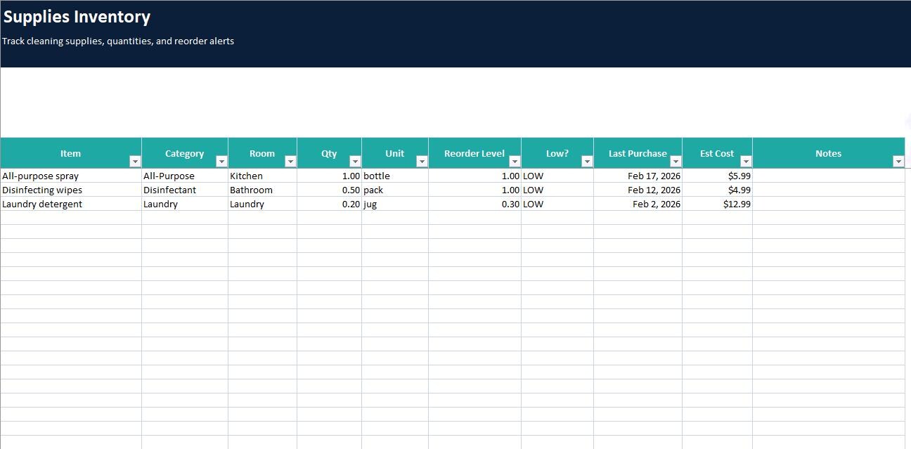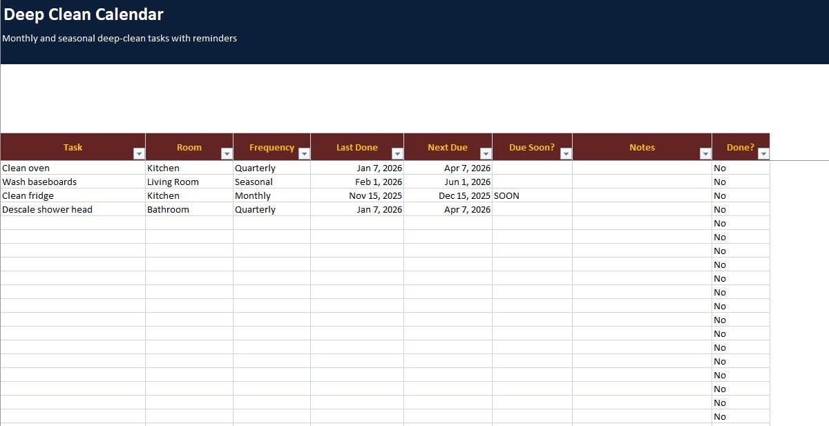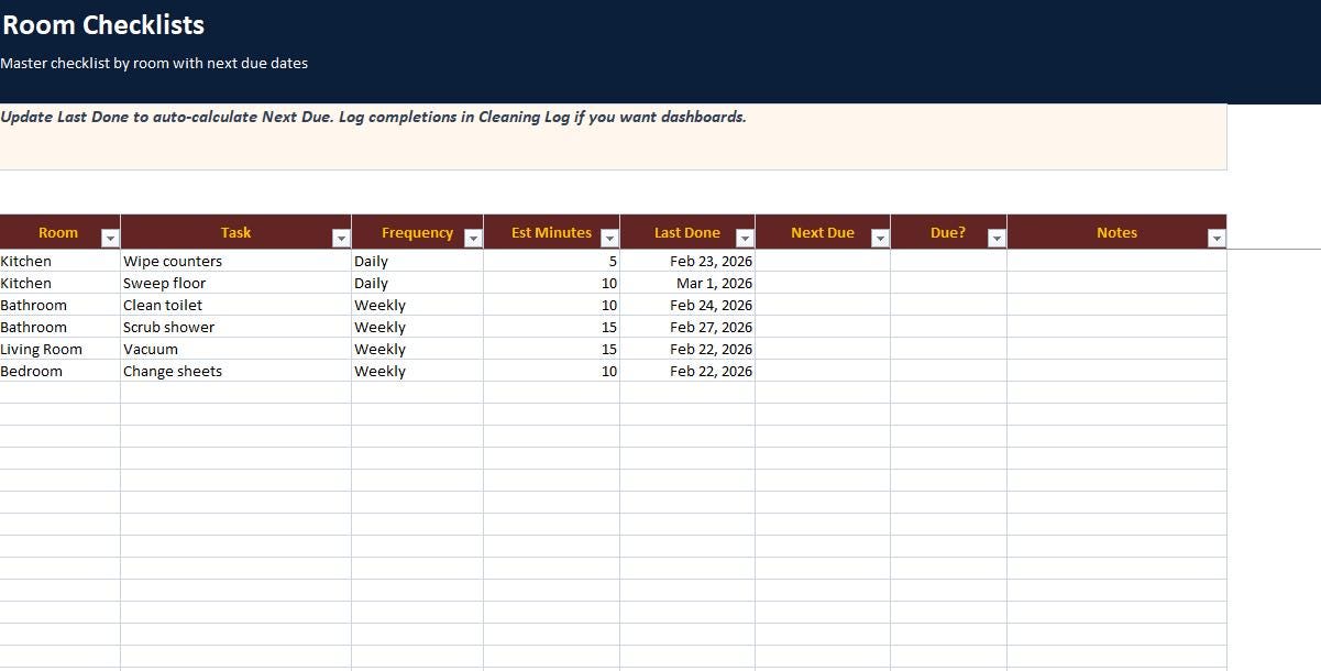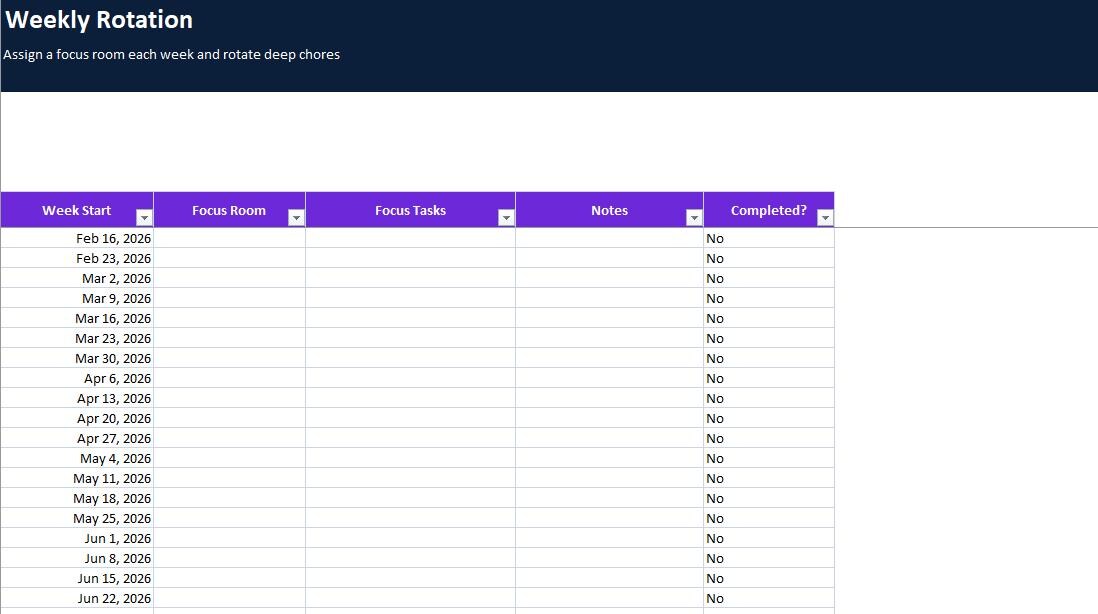 • 1 Home Cleaning Schedule Tracker spreadsheet for Excel