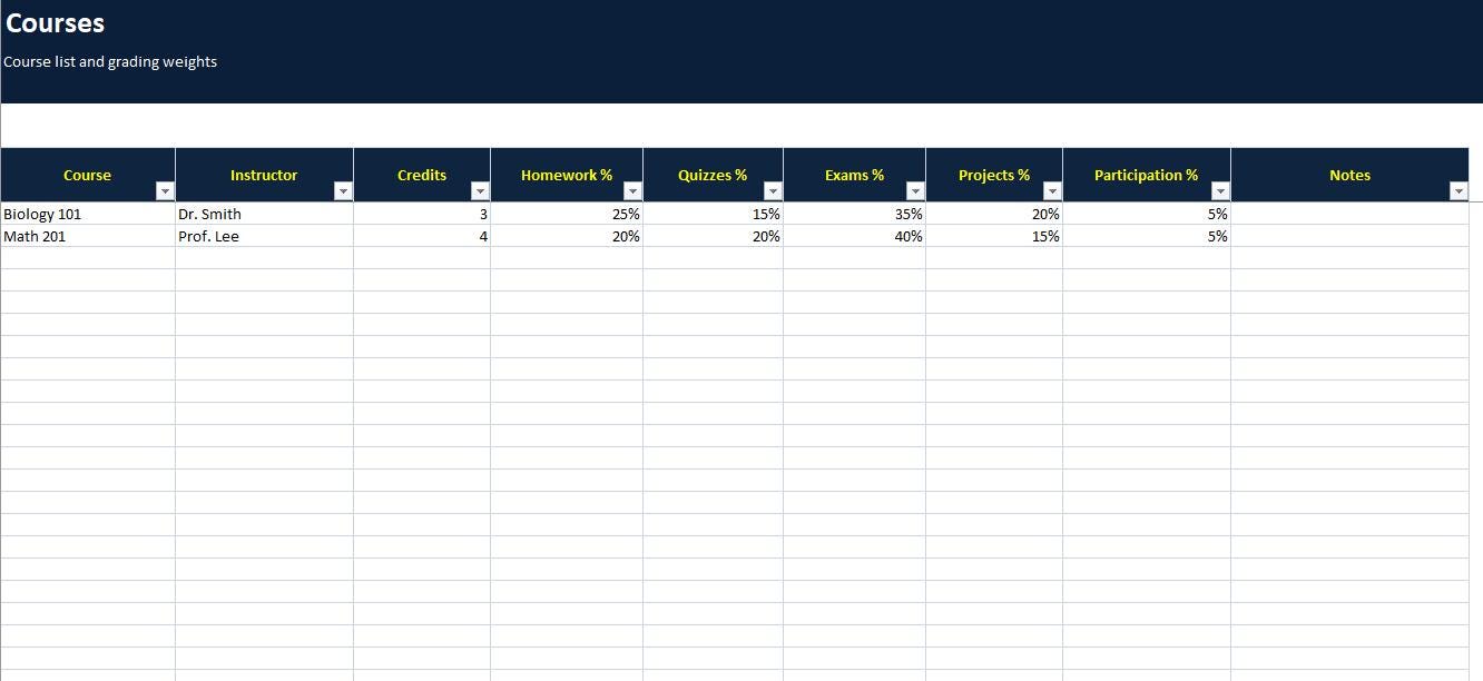 • Track grades by course with weighted categories