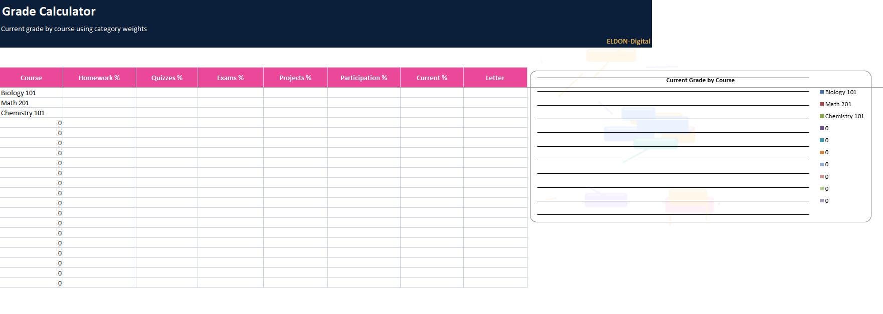 • Automatically calculates current grade and letter grade