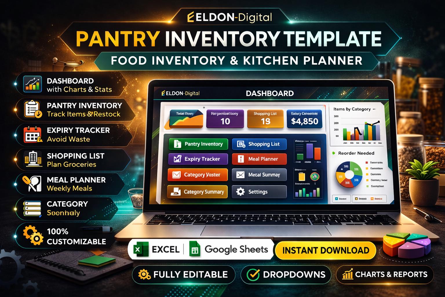 π₯«β¨ Stay organized, reduce food waste, and keep your kitchen fully stocked with this beautiful Pantry Inventory Template by ELDON-Digital.