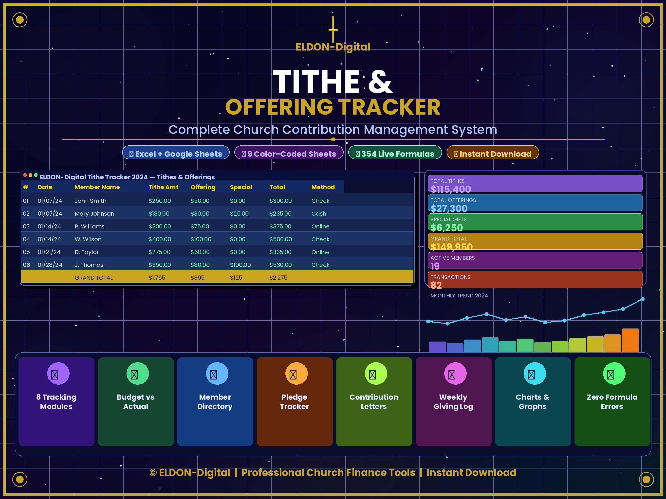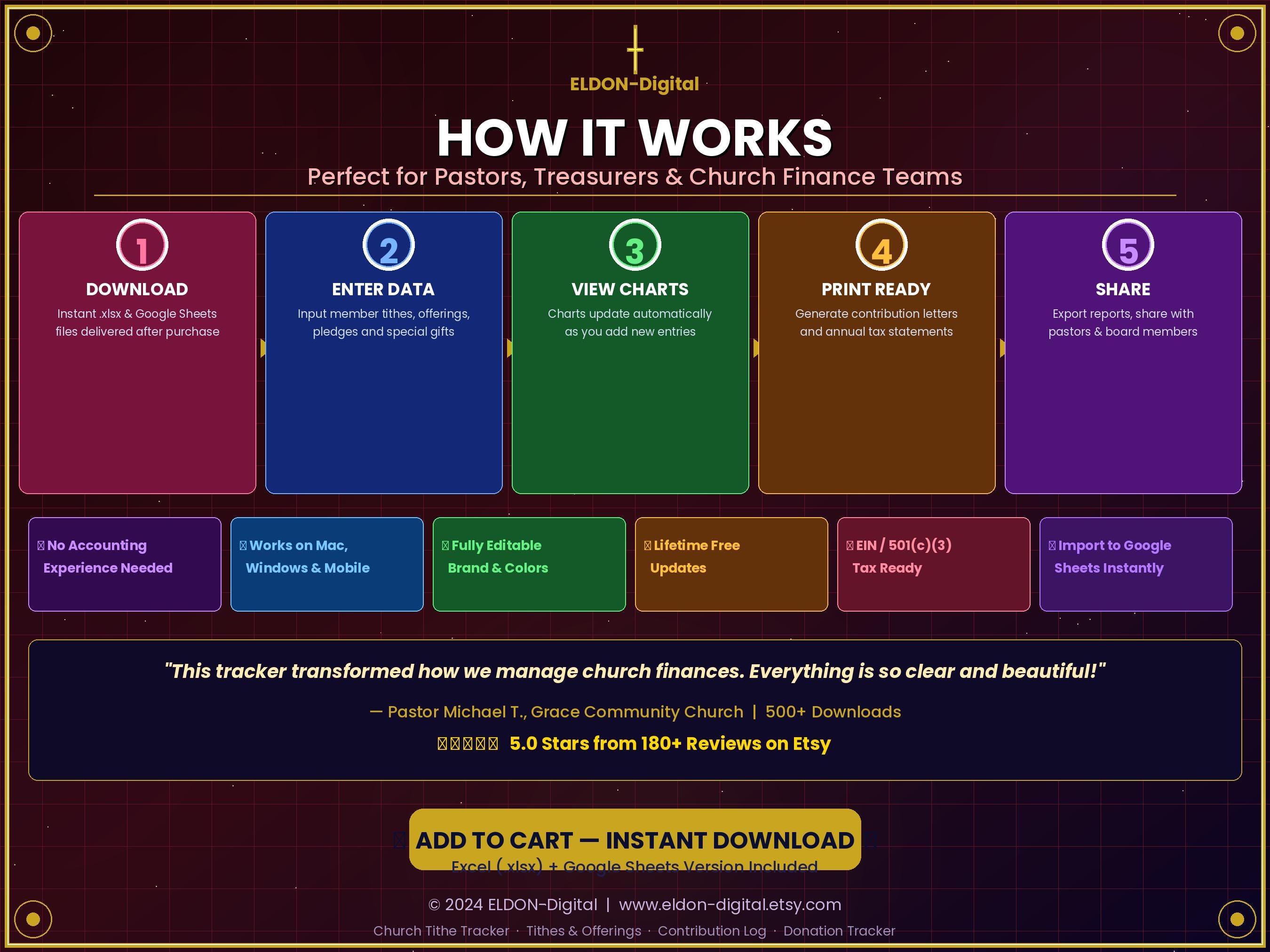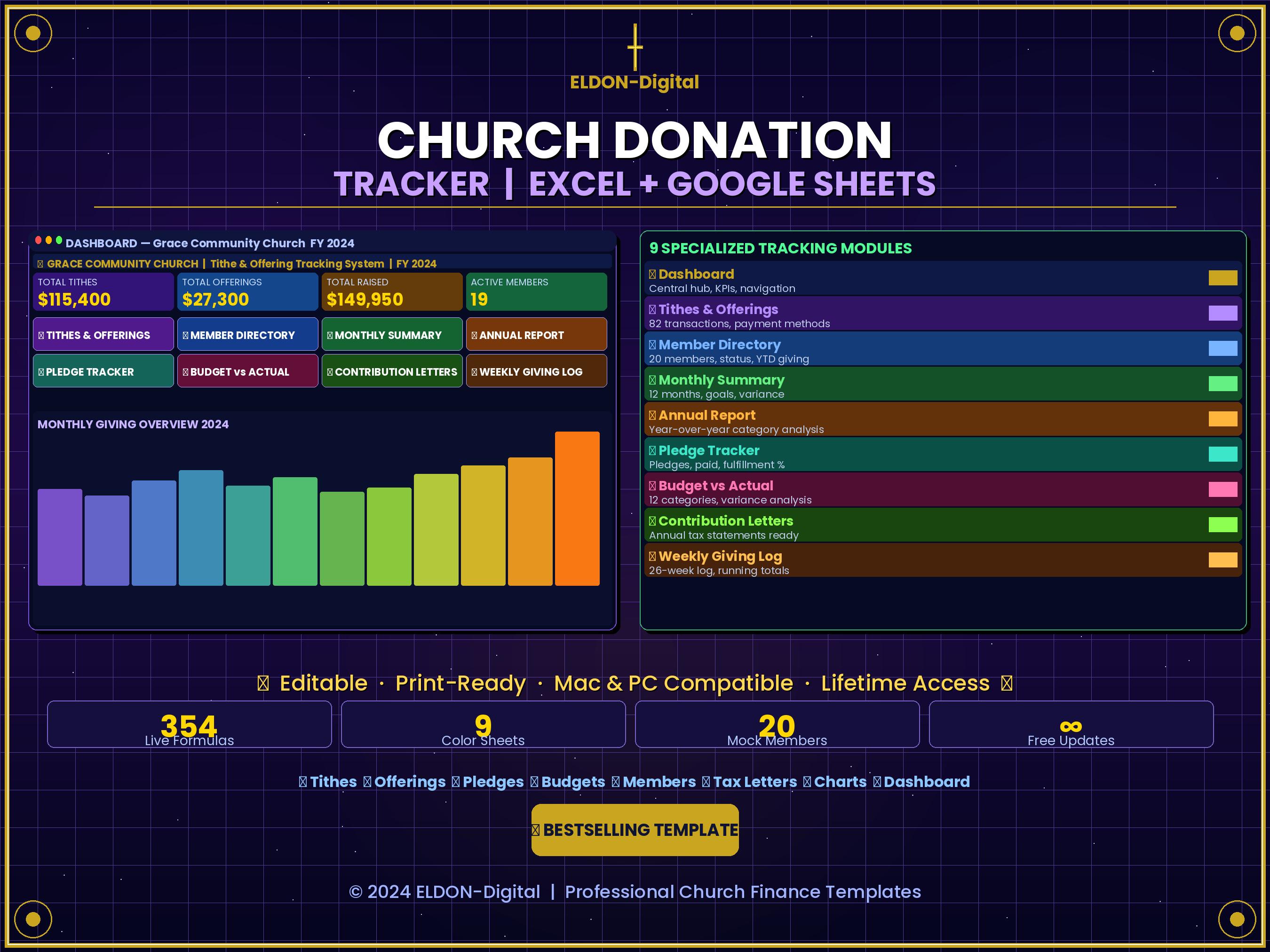 π Built for treasurers, finance committees, and church administrators who want a professional, accurate, and beautiful system for tracking every tithe, offering, and special gift - and generating official IRS-compliant contribution letters for every member.