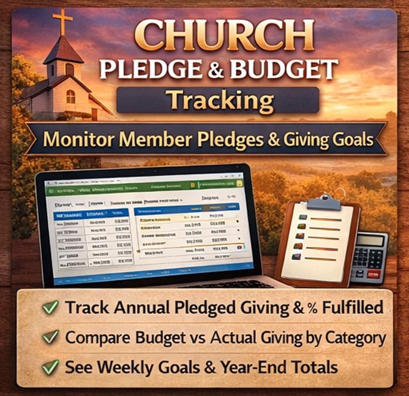 β¦ Weekly Giving Log - 26-week tracking with best week auto-identified and attendance log.
