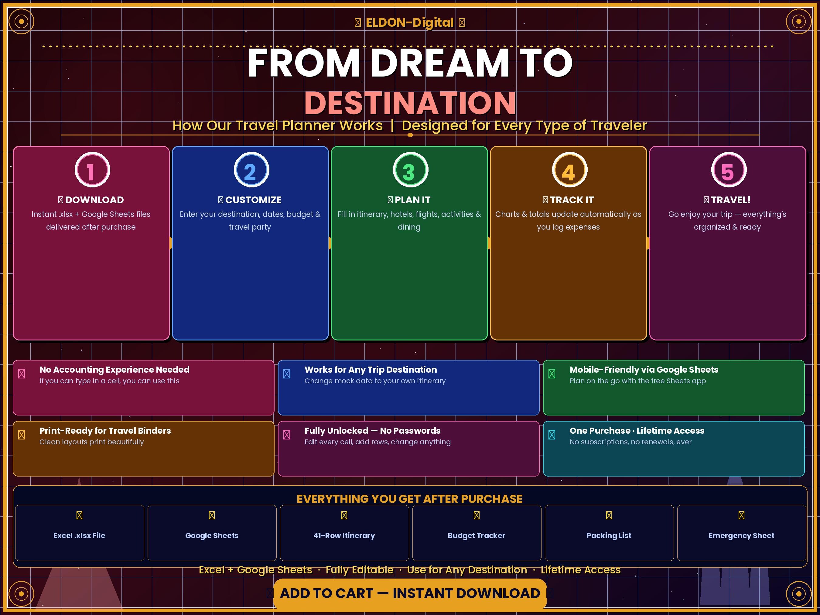 At ELDON-Digital, we believe your travel memories deserve to be organized as beautifully as the destinations themselves. Every template we create is designed with passion, precision, and purpose — so you can spend less time managing logistics and more time soaking in every breathtaking moment of your journey. ✈️🌅
