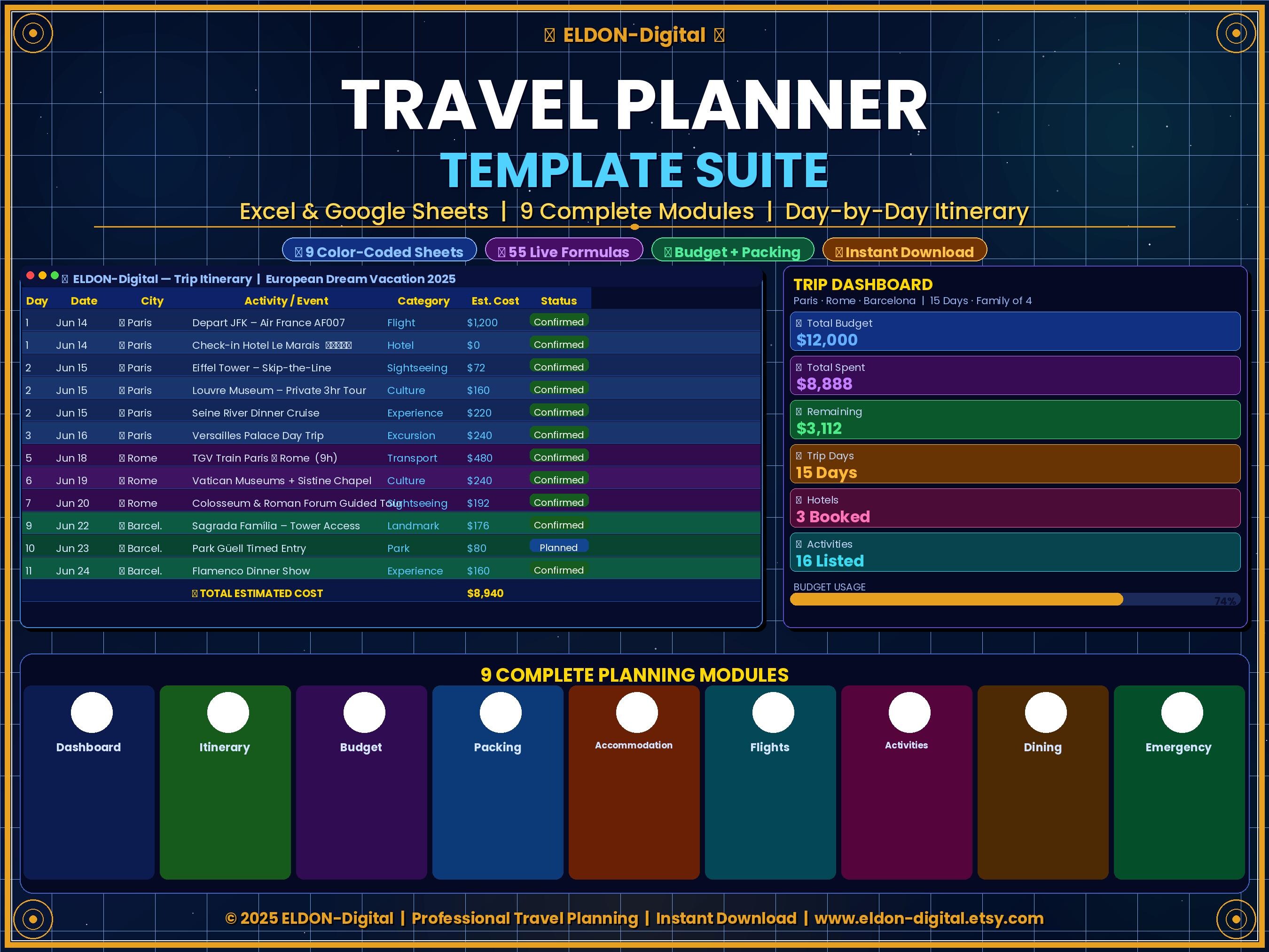 ✈️ ELDON-Digital Travel Planner Suite — The Ultimate Digital Vacation Organizer