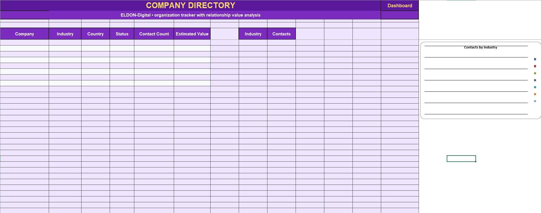 This professionally designed spreadsheet helps you keep all your personal or business contacts in one place using a clean, colorful, and easy-to-use layout in both Excel and Google Sheets.