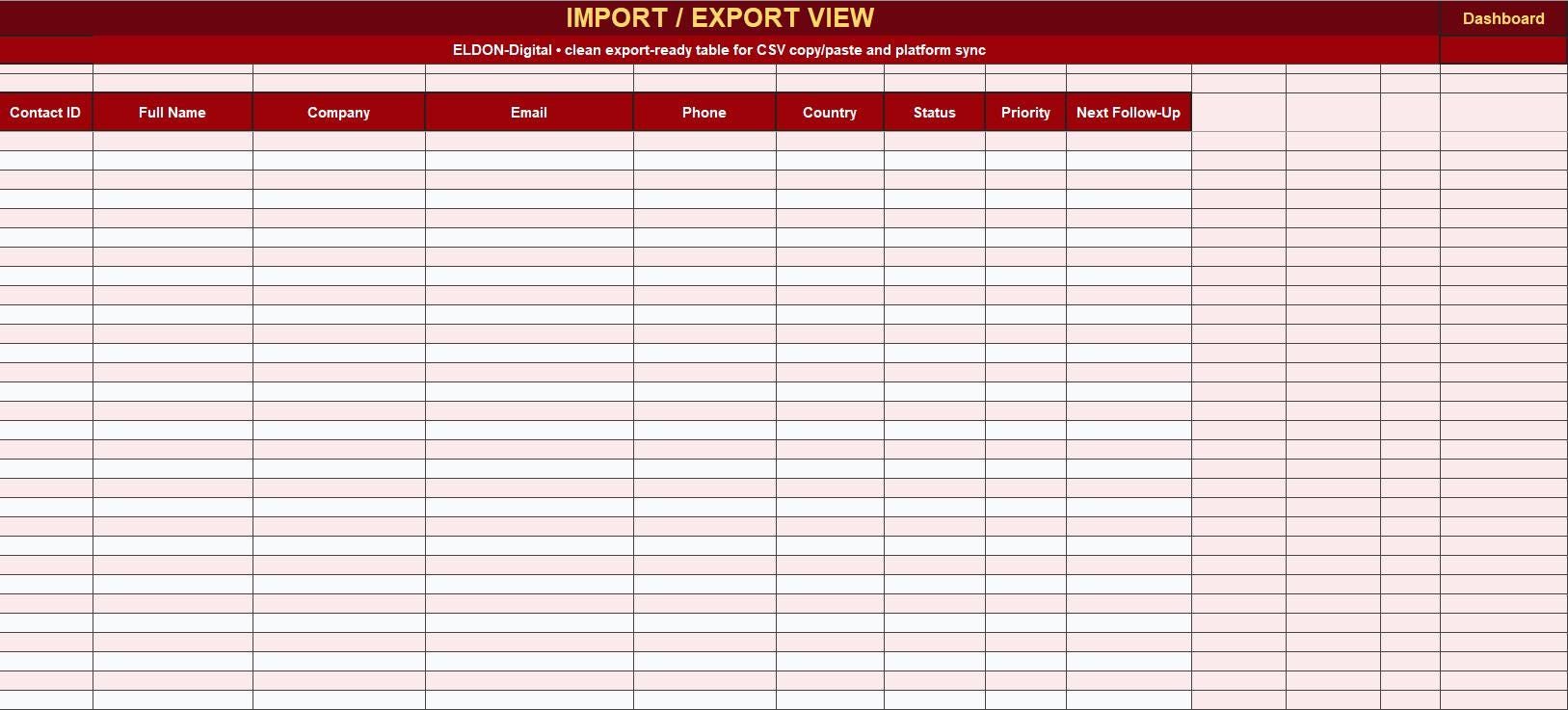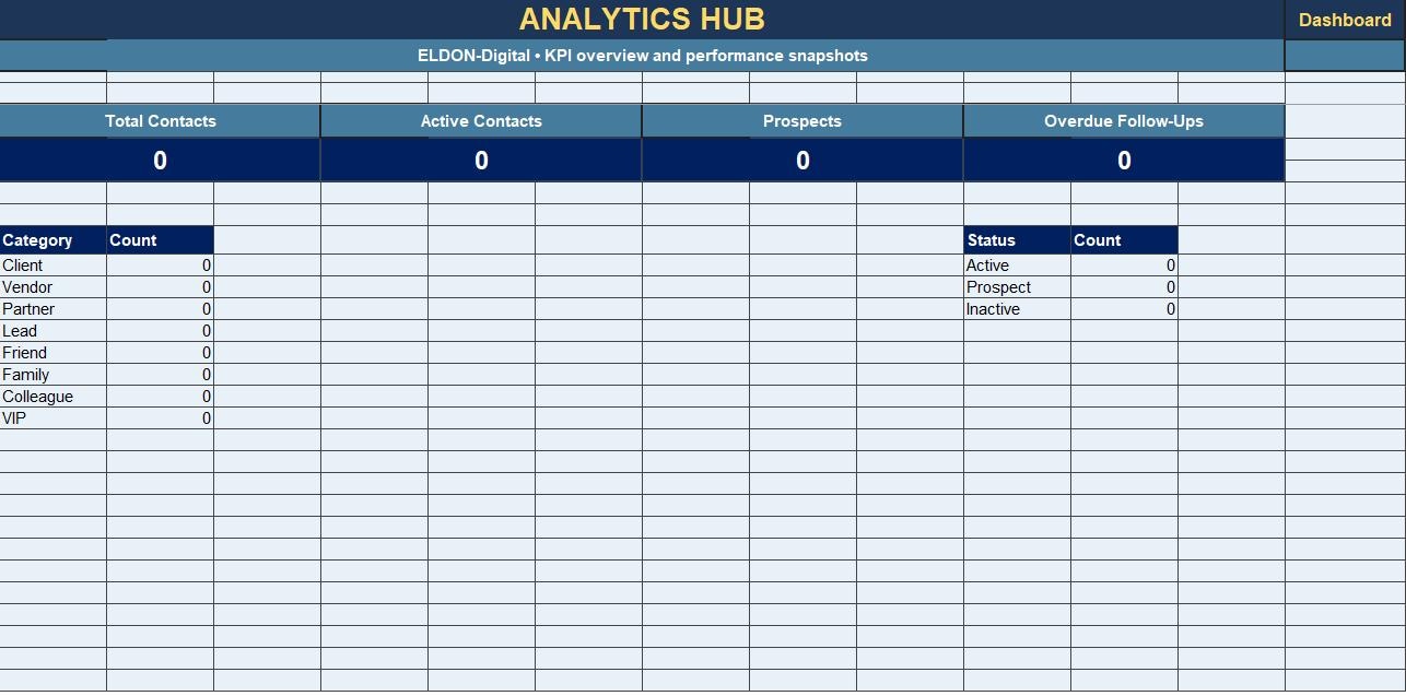 Whether you need a digital contact book for family, clients, vendors, colleagues, networking, or business leads, this template gives you a polished system to manage names, phone numbers, email addresses, companies, notes, reminders, and more.