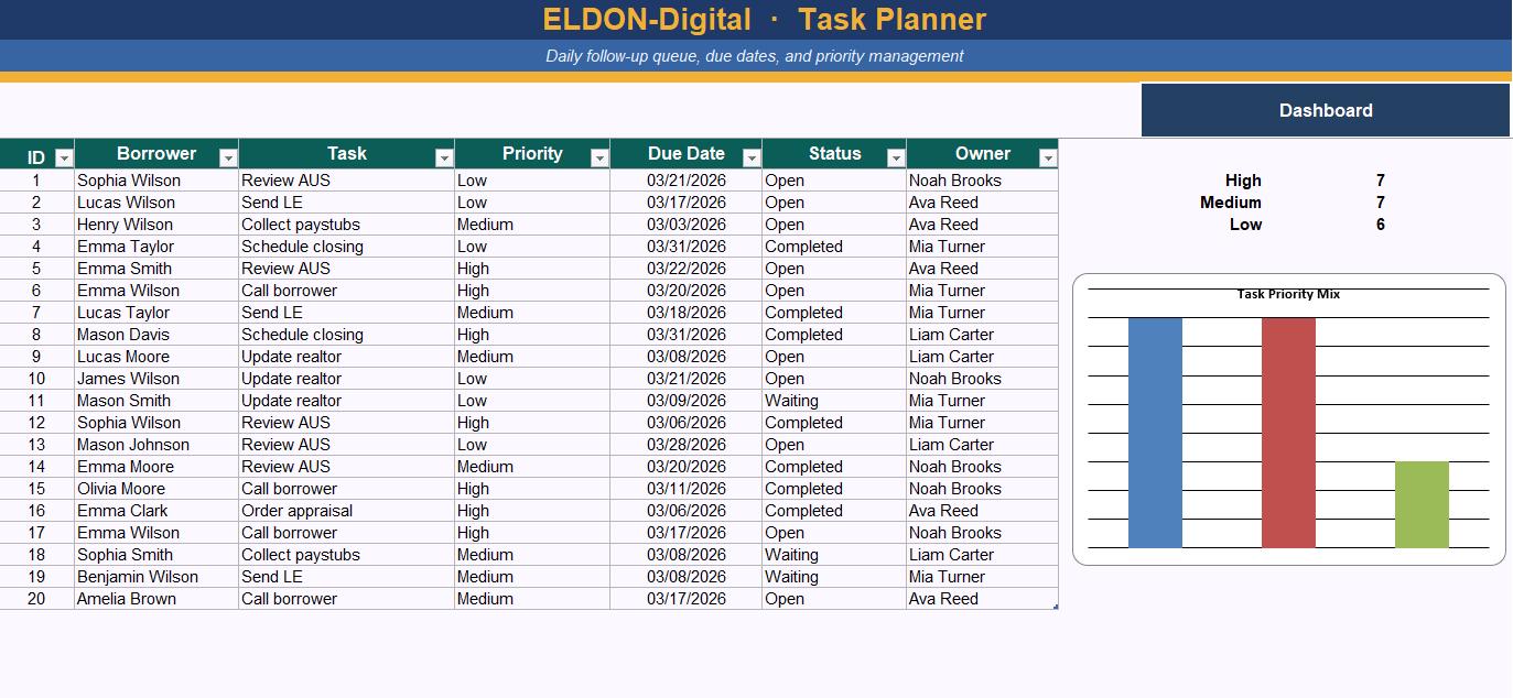 โ Great for managing loan files, tracking application progress, monitoring deadlines, and organizing client communication