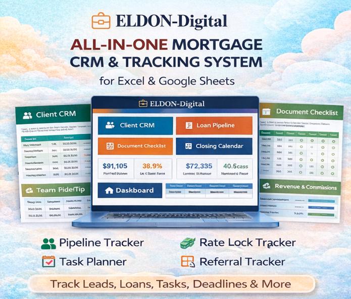 ๐ก Stay organized, manage clients with confidence, and simplify your mortgage workflow with this complete Loan Officer Template Bundle by ELDON-Digital!