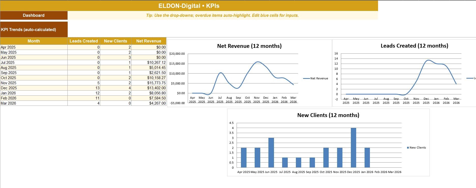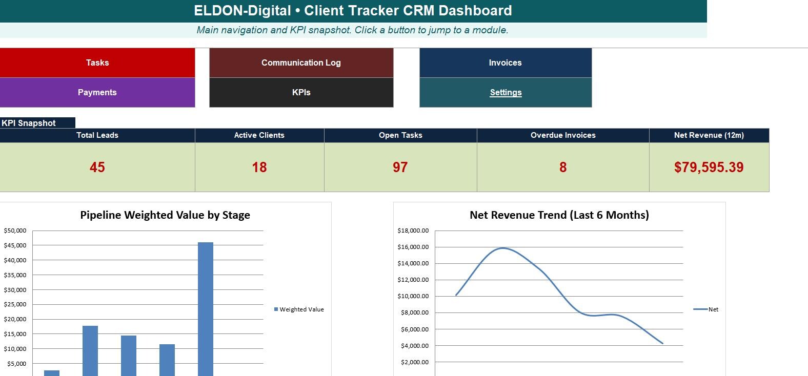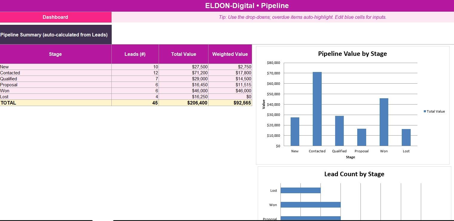 ✨ ELDON-Digital Client Tracker CRM Spreadsheet Template ✨