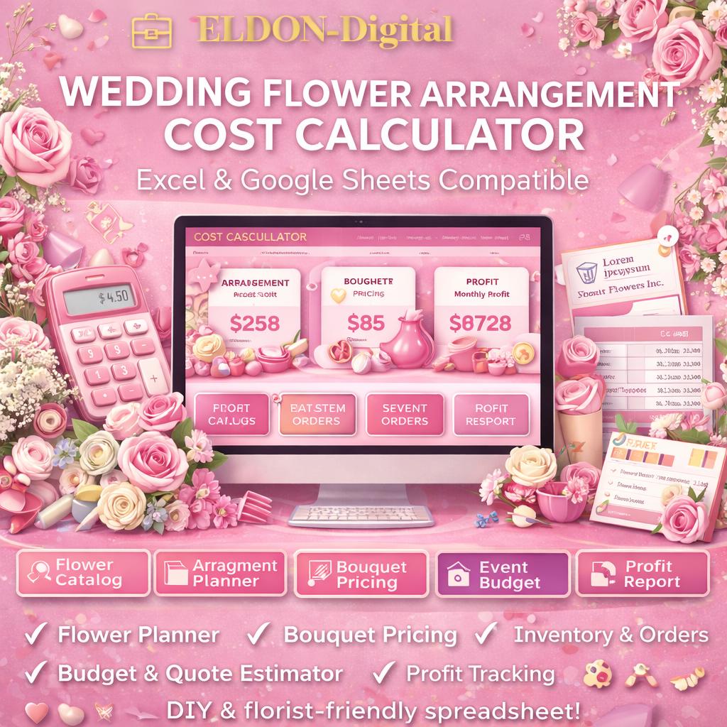 ๐ธ Plan wedding flowers beautifully and price them with confidence using the ELDON-Digital Wedding Flower Arrangement Calculator Suite.
