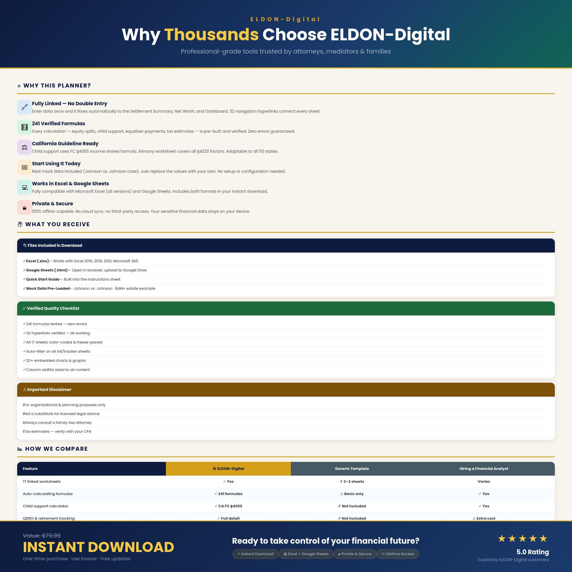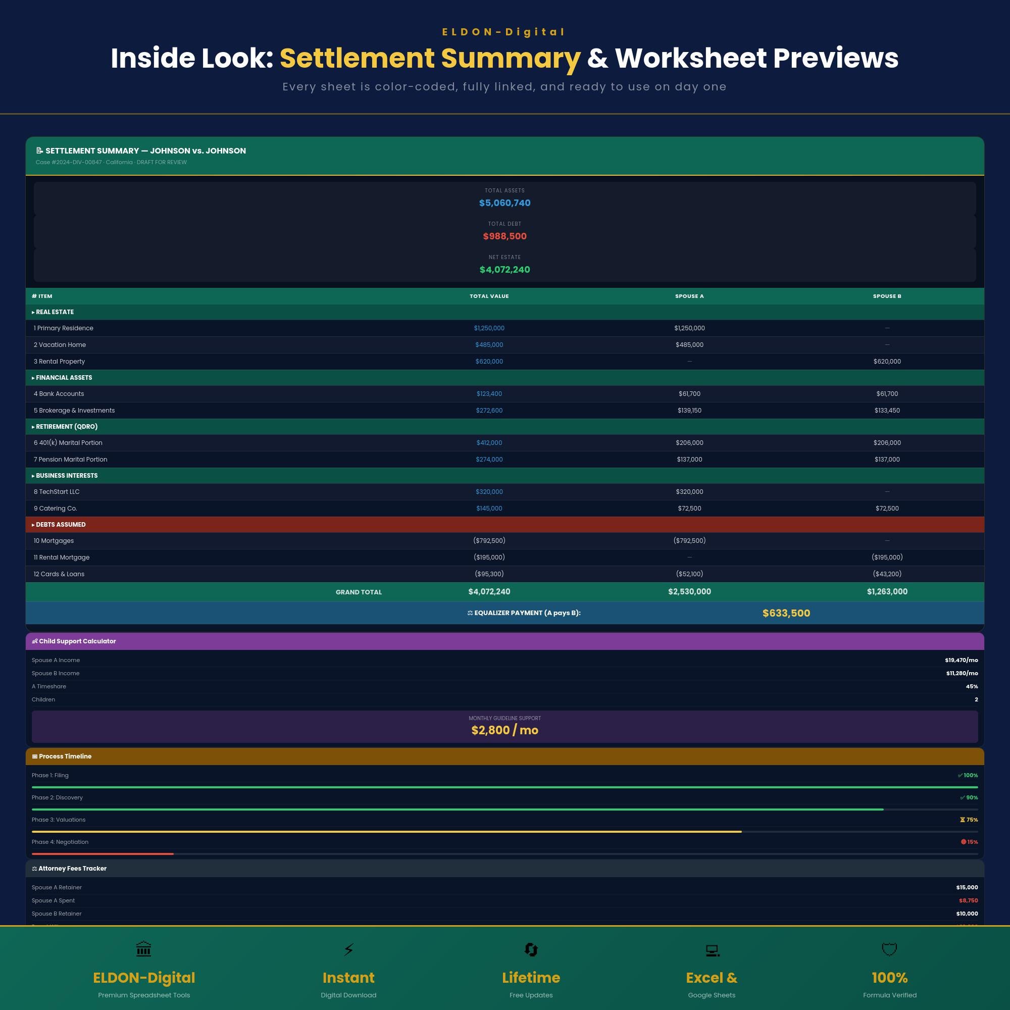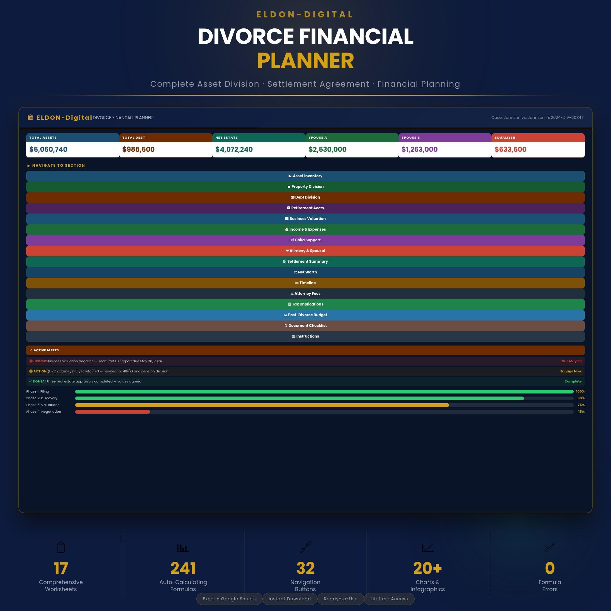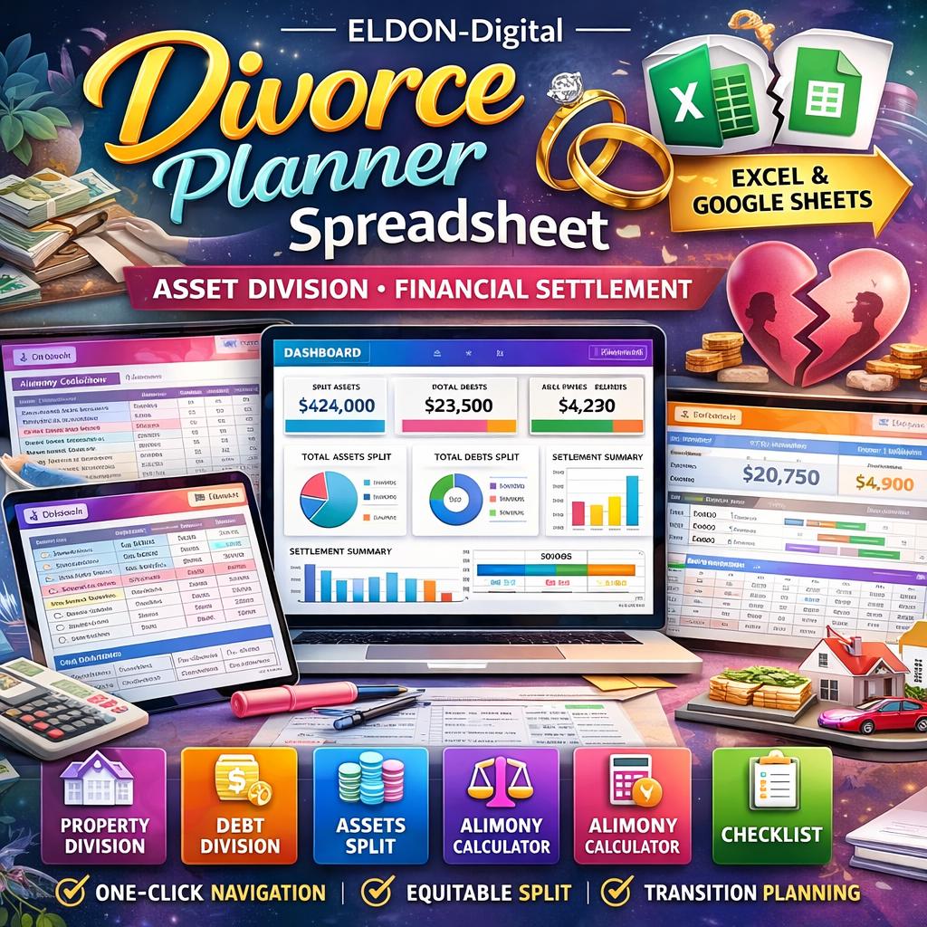 💼 ELDON-Digital | Divorce Financial Planner - Excel & Google Sheets Take control of your finances during one of life's most stressful transitions