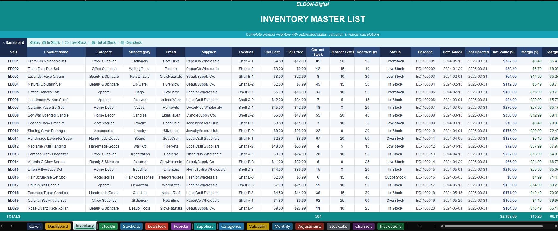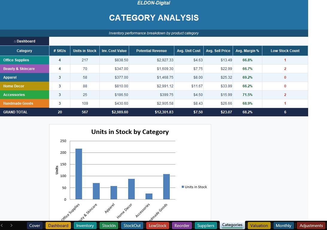 π¦ INVENTORY TRACKER SYSTEM β Excel & Google Sheets | ELDON-Digital