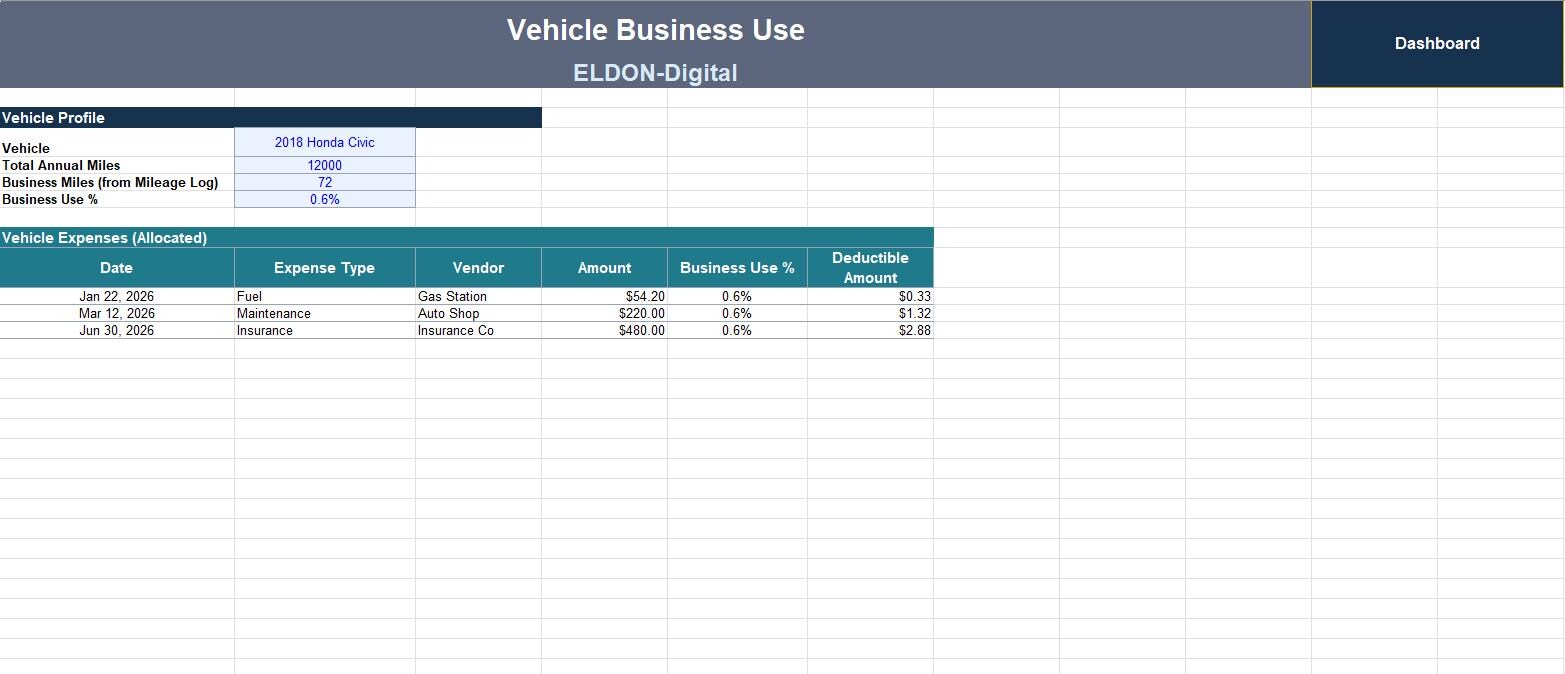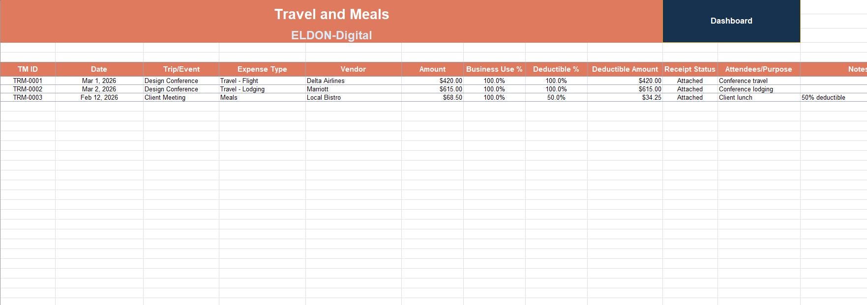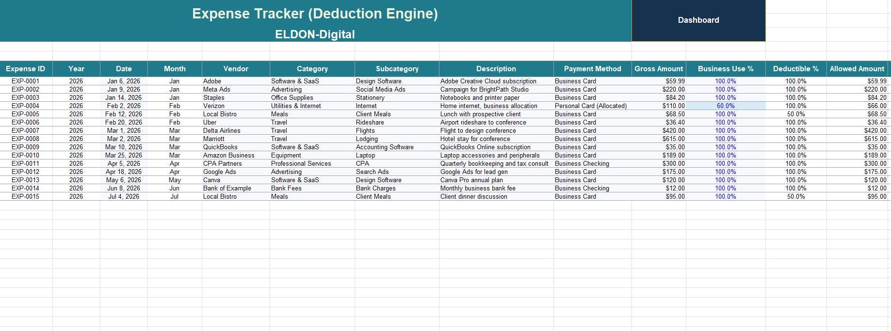 Tax season can feel overwhelming, but this spreadsheet helps you keep everything organized throughout the year. Instead of searching through receipts, emails, and bank transactions at the last minute, you can track your deductible business activity in one clear and professional system. πβ