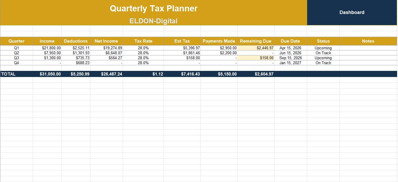 This spreadsheet is intended for organizational and planning purposes. It does not replace professional advice from a CPA, accountant, or tax professional.
