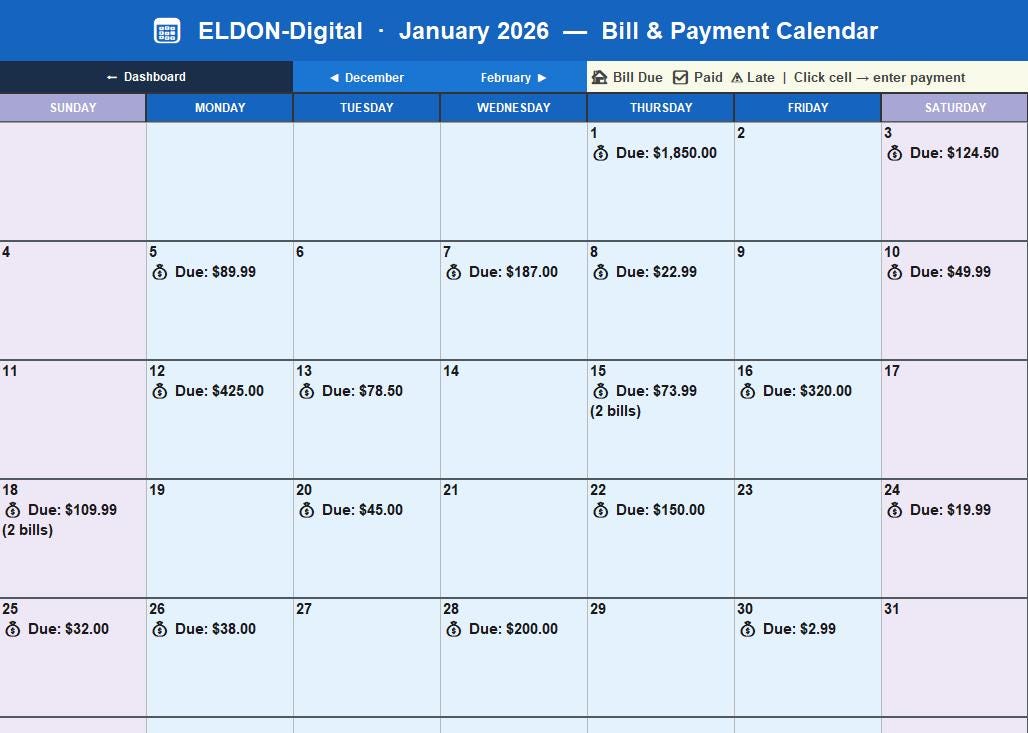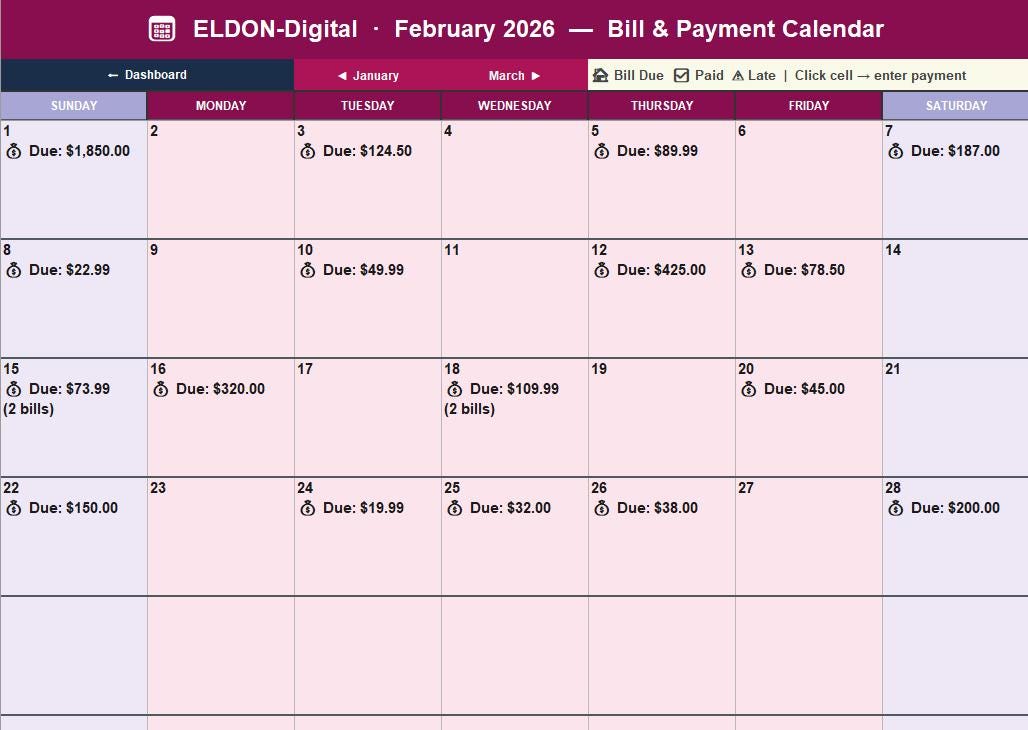 π³β¨ ELDON-Digital Smart Bill Calendar β Never Miss a Payment Again! β¨π³