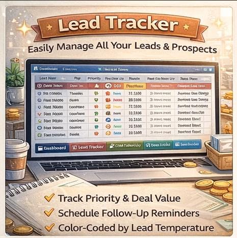 π Lead Tracker β Manage all your prospects in one place. Track priority, lead temperature π₯, deal value, follow-up dates, and assigned reps. Never lose a hot lead again.