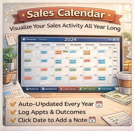 Annual Sales Calendar β A dynamic 12-month calendar that automatically updates when you change the year in Settings. Book appointments, log outcomes, and visualize your full sales year at a glance. ποΈ