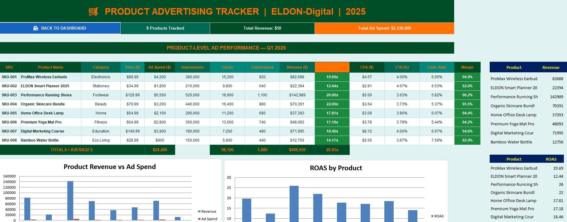 π Product Advertising Tracker β Track ad performance at the individual product level. Monitor ROAS, CPA, CTR, conversion rate, and profit margin per SKU so you know exactly which products are your winners. π