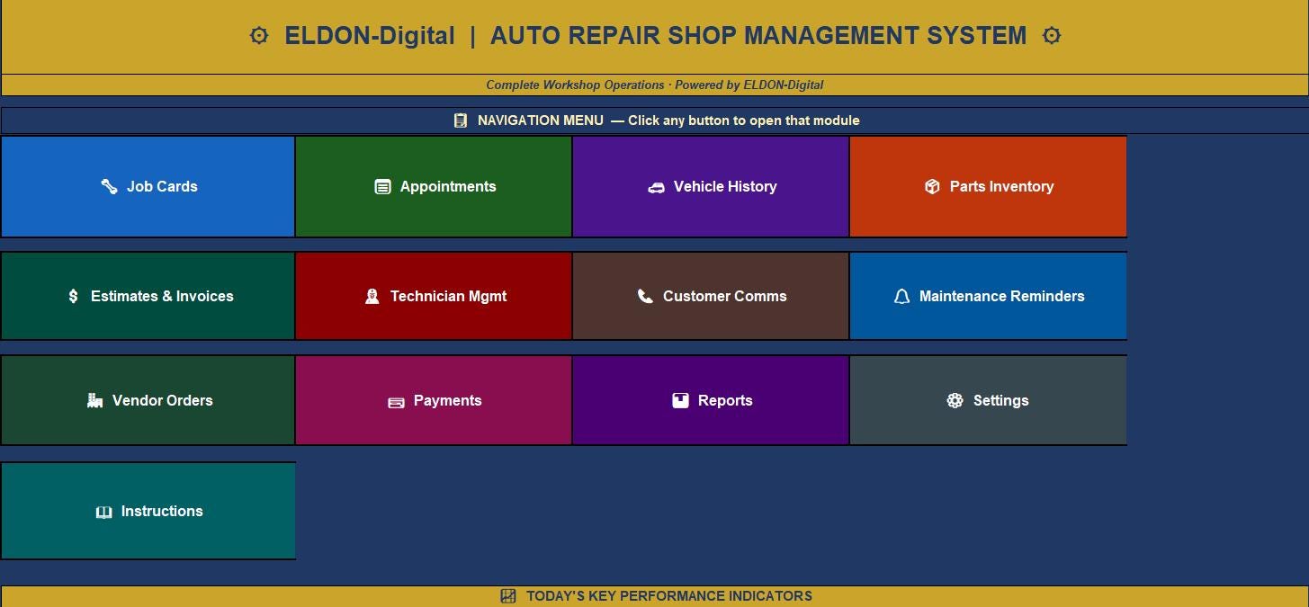 βοΈ ELDON-Digital Auto Repair Shop Management System βοΈ The Most Complete Auto Repair Shop Spreadsheet on Etsy - 14 Powerful Modules in One File!