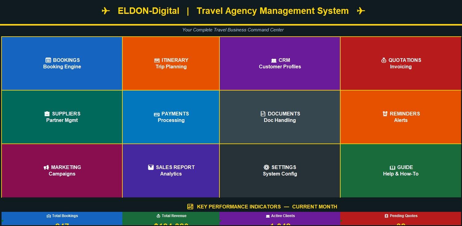 โ๏ธ Run Your Entire Travel Agency From One Powerful Spreadsheet! By ELDON-Digital โ Professional Business Templates & Digital Tools