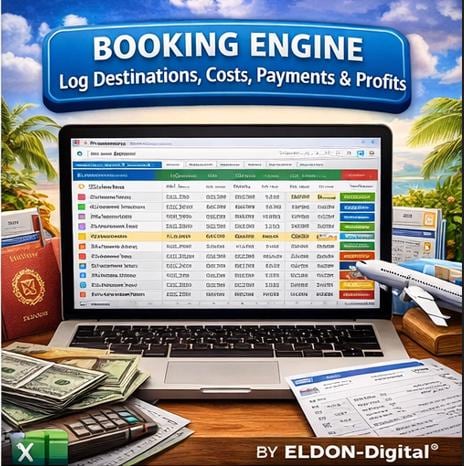 Are you a travel agent, tour operator, or travel business owner drowning in spreadsheets, sticky notes, and missed follow-ups? Say goodbye to the chaos! ELDON-Digital's All-in-One Travel Agency Management System is the most comprehensive Excel template ever built for travel professionals โ packed with everything you need to run a polished, organized, and profitable travel business from Day 1. โ
