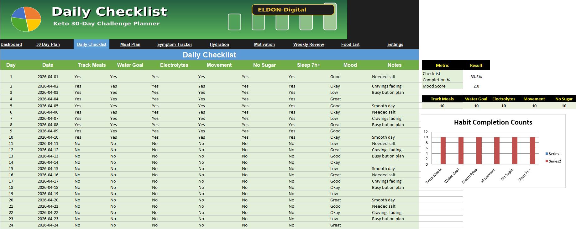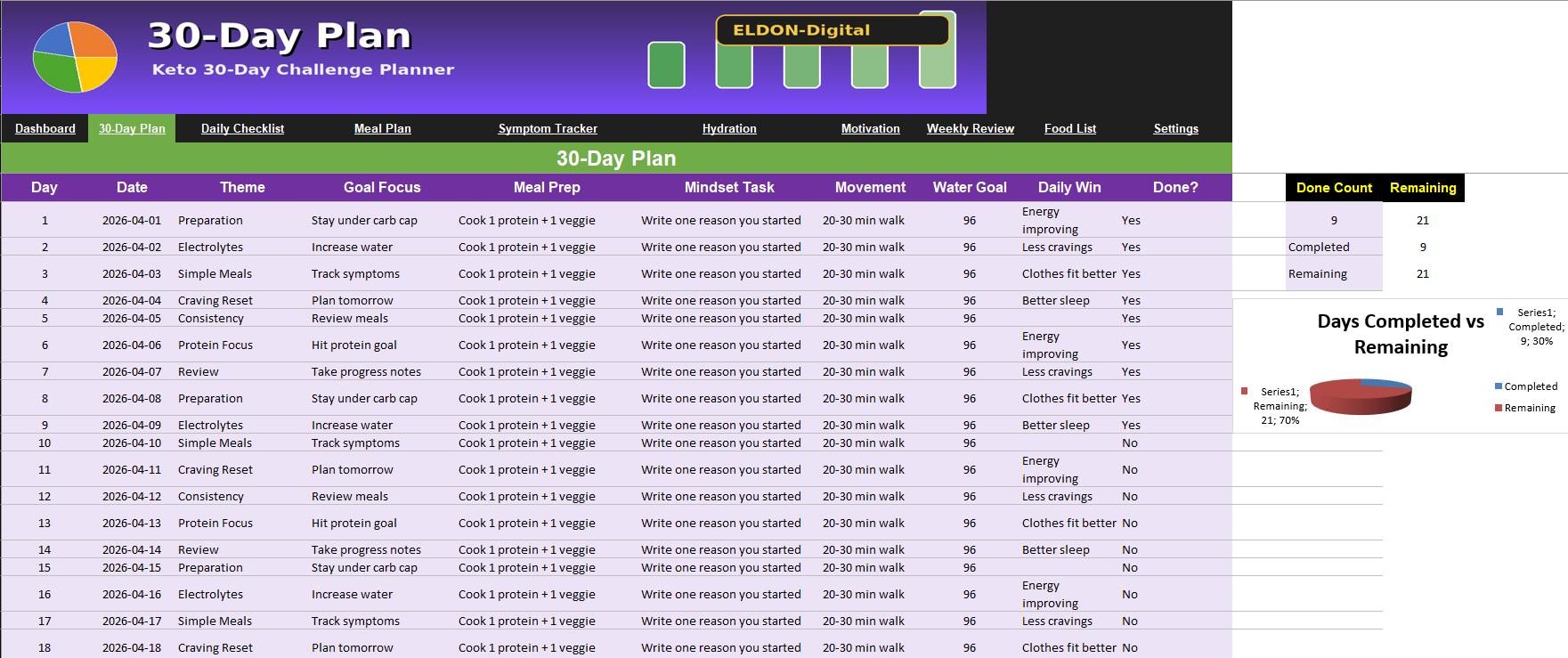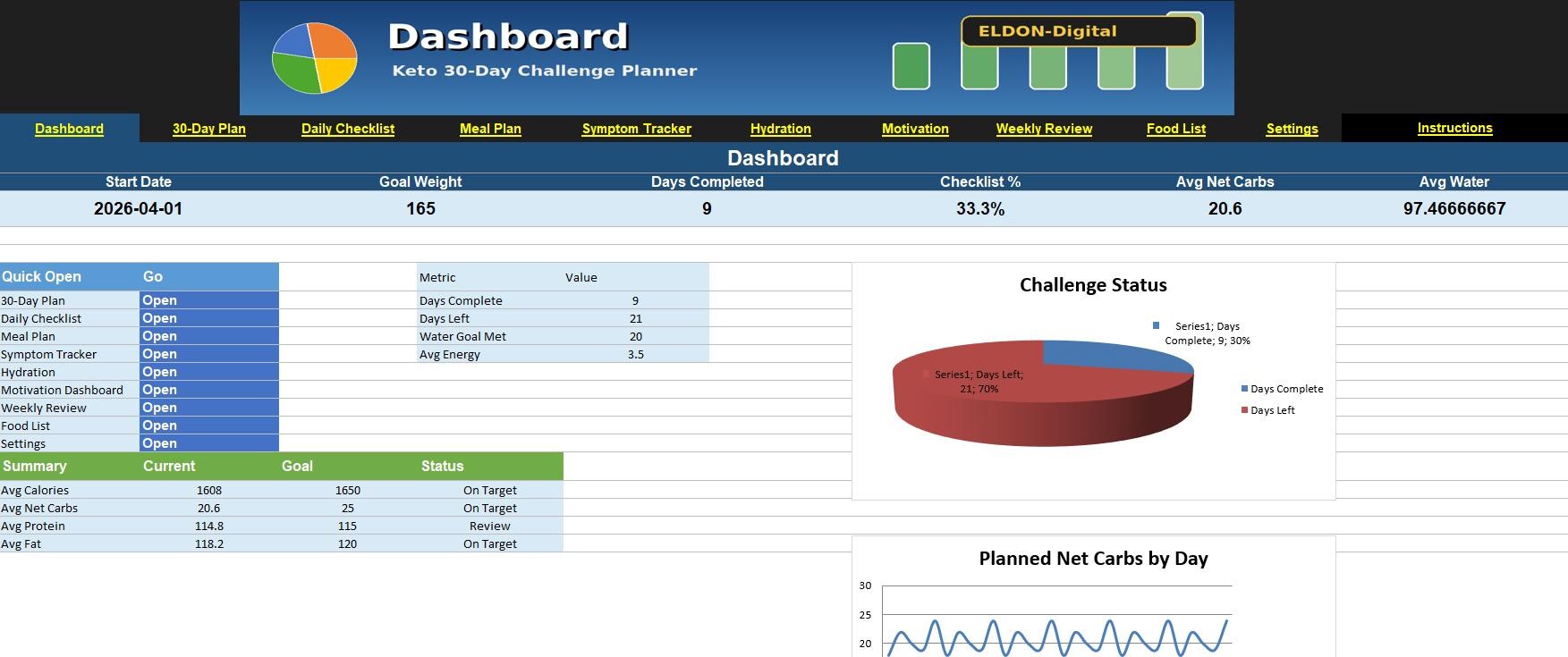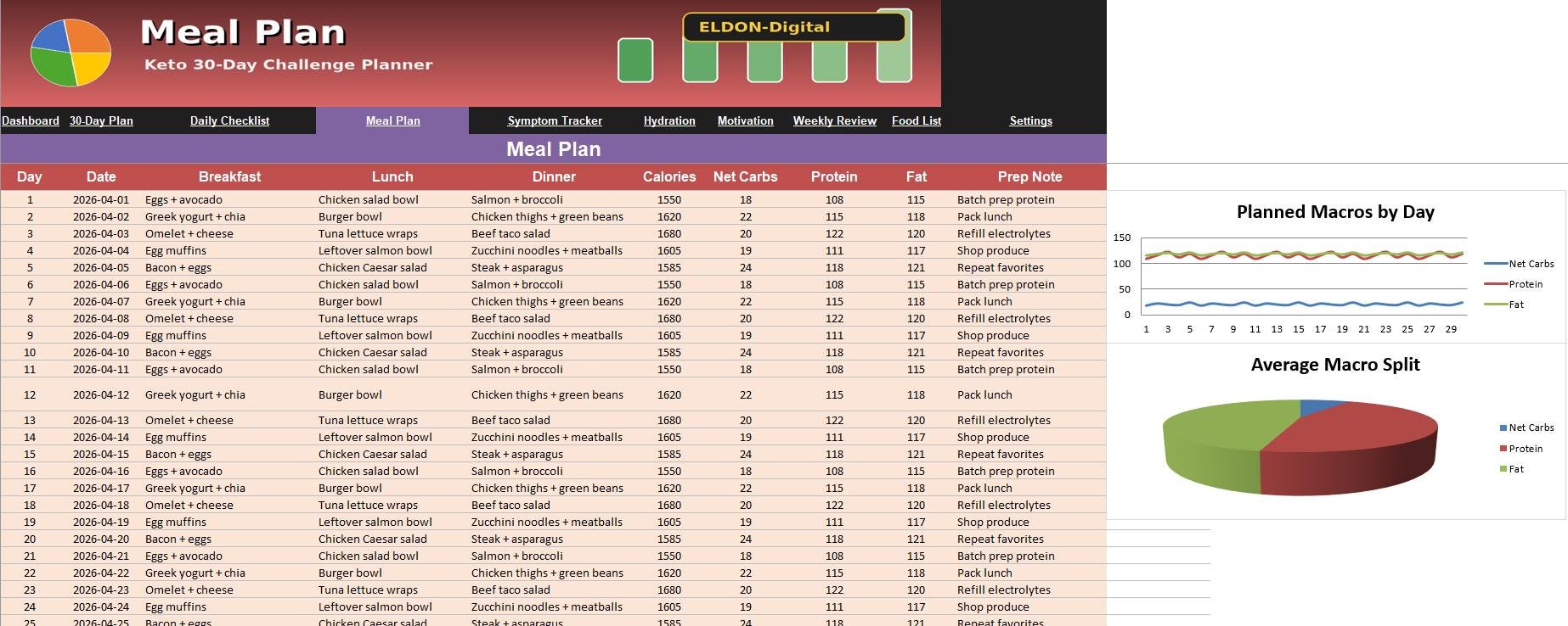 π₯ ELDON-Digital Keto 30-Day Challenge Planner
