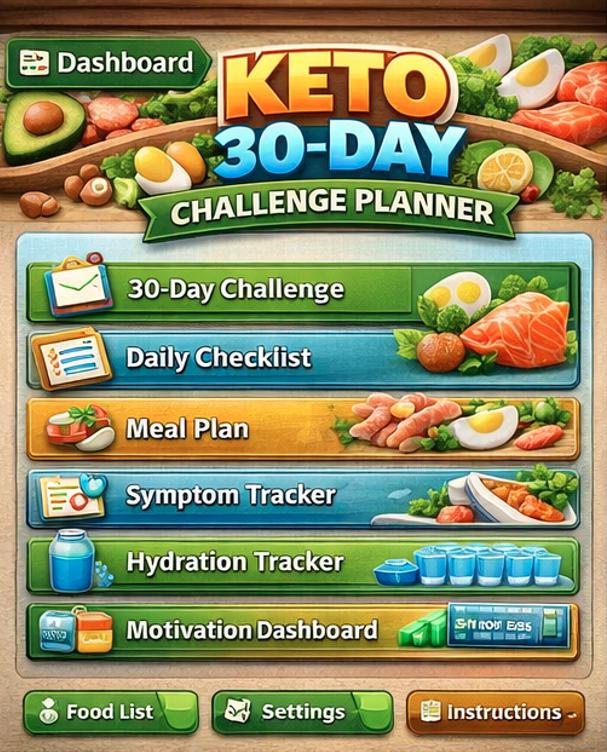 It is a guided keto system designed to help you stay consistent, track everything that matters, and actually complete your 30-day challenge successfully.