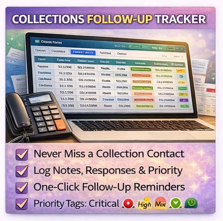 π© Drowning in unpaid invoices with no clear picture of who owes what? π© Manually calculating late fees and aging reports every month? π© Missing follow-up dates because your collection notes are scattered everywhere? π© Spending hours building reports your boss needs in 5 minutes?