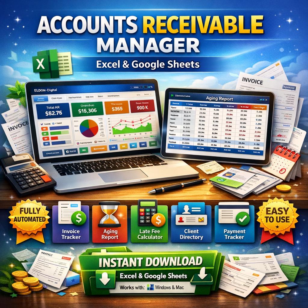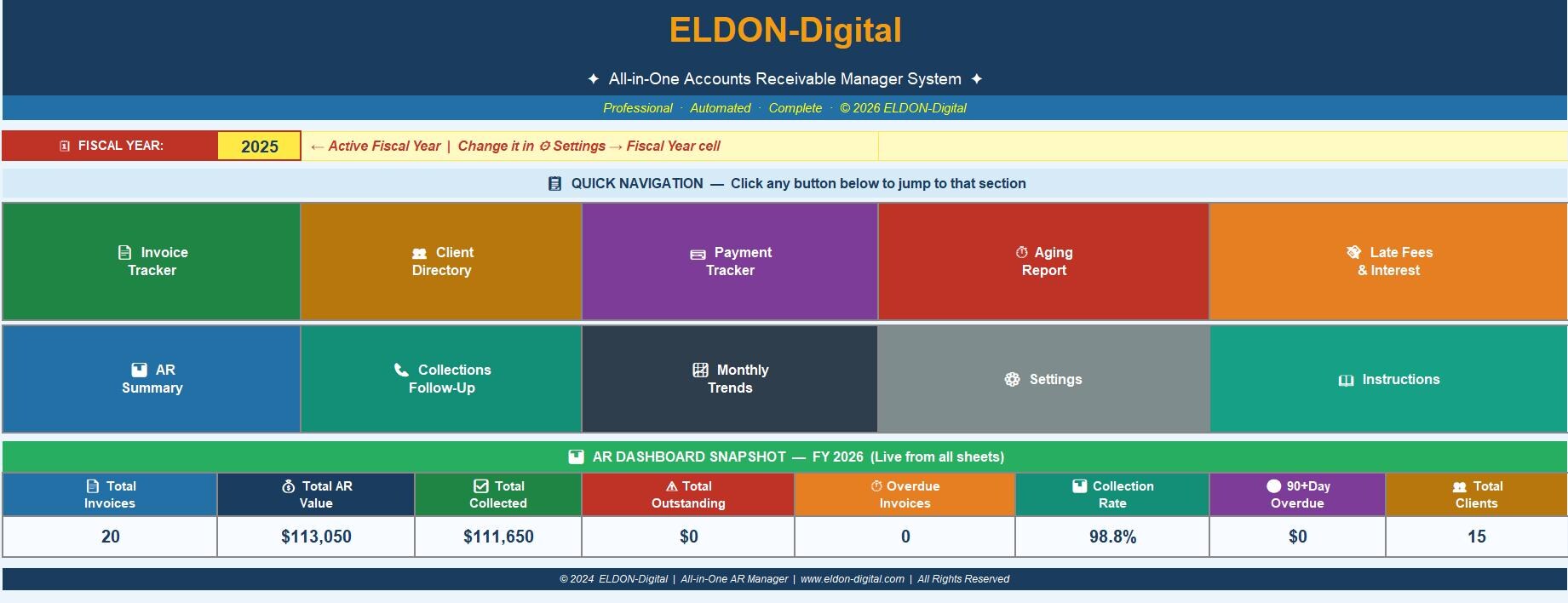 π ELDON-Digital Presents -The Ultimate Accounts Receivable Manager System Stop chasing invoices manually. Let your spreadsheet do the work.