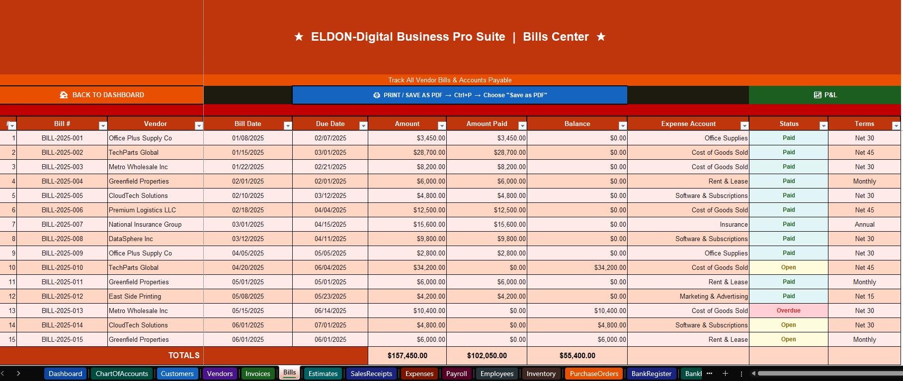 ๐ Bills & Payables -Track vendor bills, due dates, and payment status