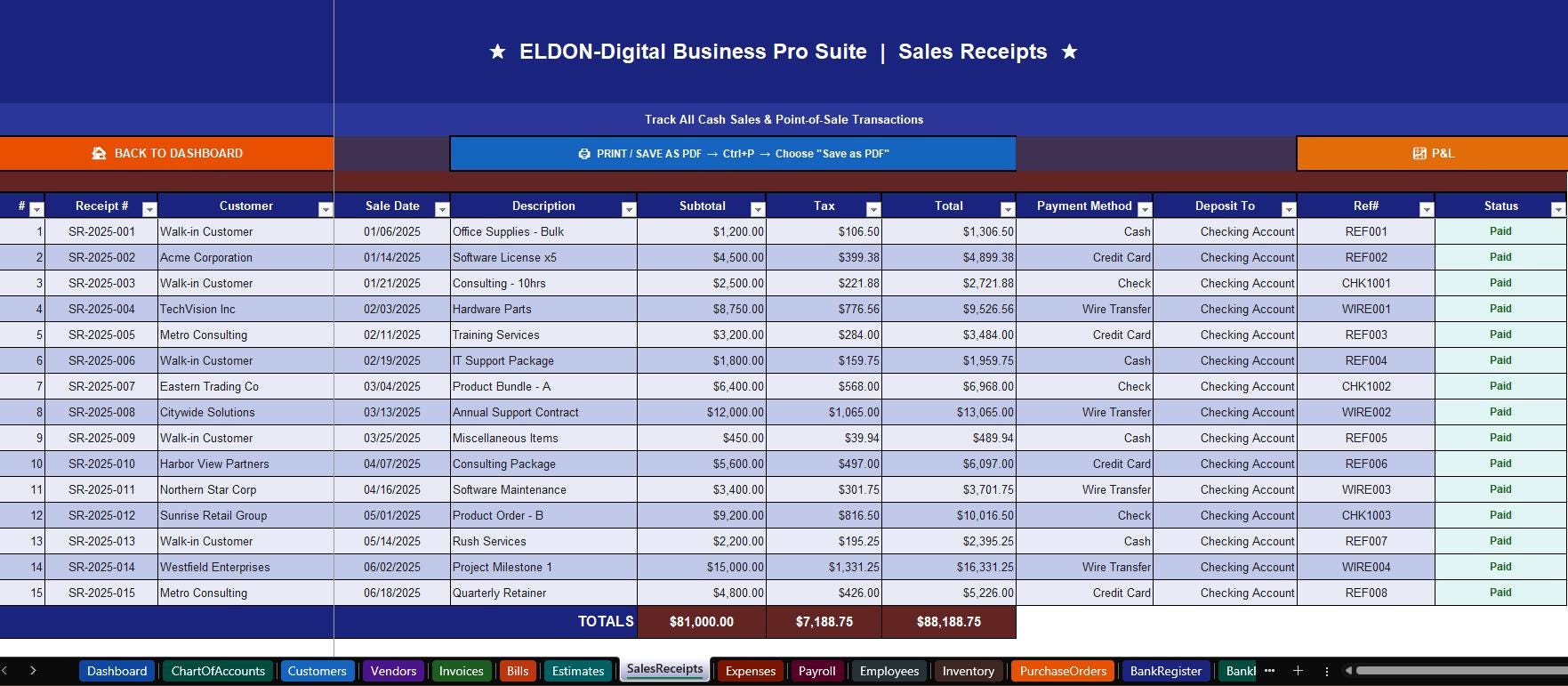 ๐ Sales Receipts -Record all cash sales and point-of-sale transactions