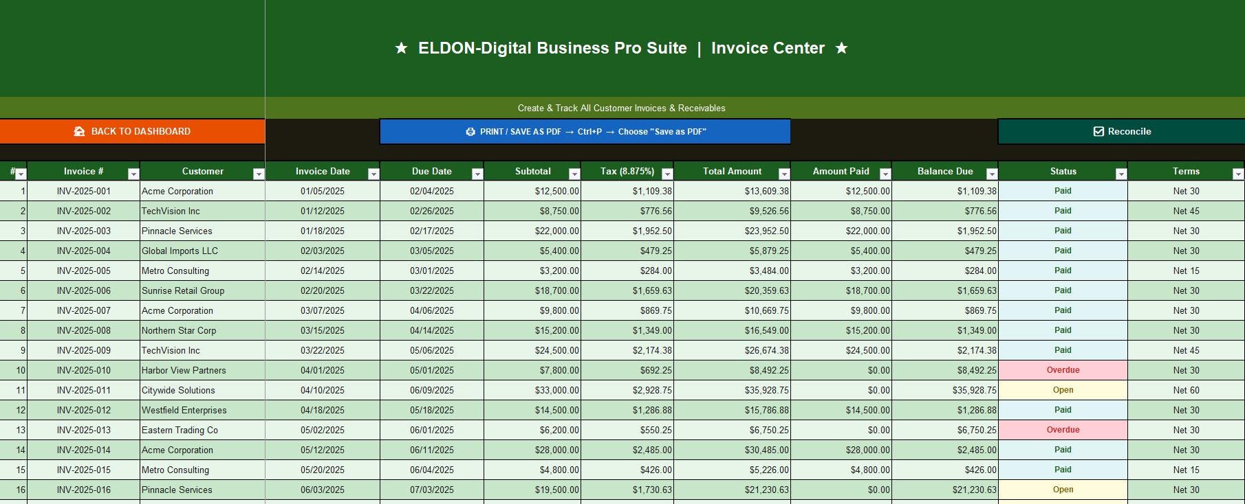 At ELDON-Digital, we build professional-grade digital tools that work as hard as you do. Every template is crafted with real business workflows in mind -not just pretty spreadsheets, but fully functional systems that save you time, money, and headaches. ๐ช