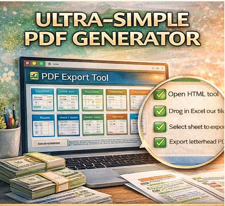 This is what makes this suite truly unique. Included is a standalone HTML-based PDF Export Tool that runs directly in your web browser -no internet connection, no software installation, no subscriptions required. ๐๐ก