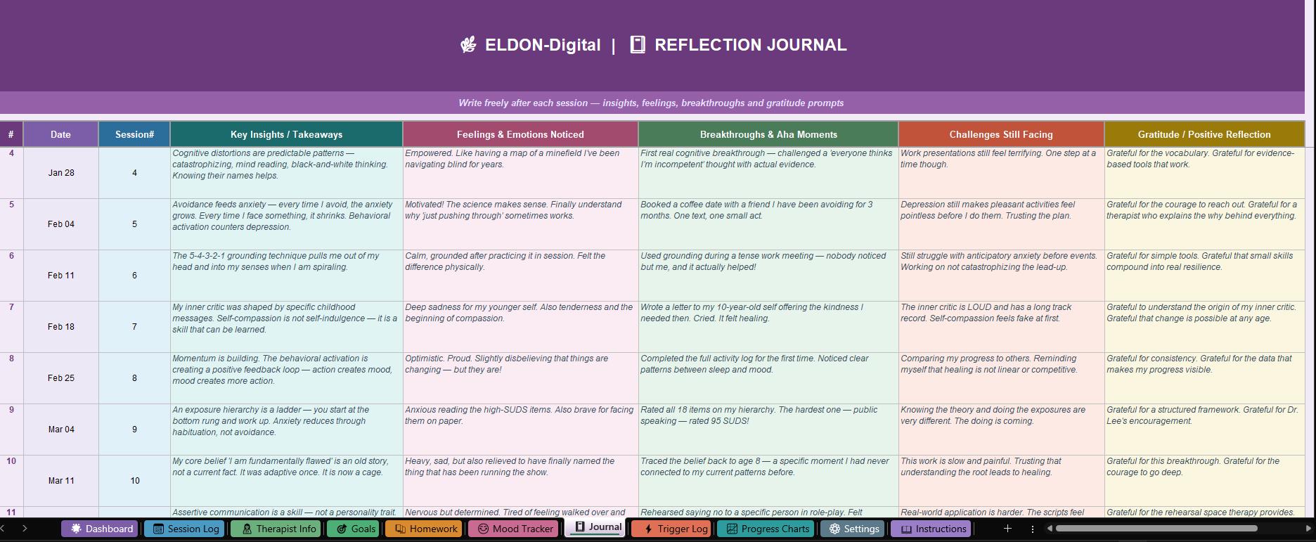 πΏ YOUR HEALING JOURNEY DESERVES TO BE SEEN -ELDON-Digital Makes It Visible β¨ The Most Complete Therapy Progress Tracker for Excel & Google Sheets