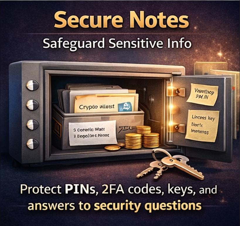 π 3. Secure Notes & Sensitive Data -A private vault for sensitive text information you need to reference but never say out loud. Store: 2FA recovery codes (locations only!), security question answers, device PINs, WiFi passwords, safe combinations, software license keys, crypto wallet references, and credit card PINs. Each note has a security classification (Top Secret/Confidential/Private), category, access level (Owner Only/Trusted Contact/Emergency Use), and tags. The security level column color-codes instantly -red for Top Secret, orange for Confidential π‘οΈ