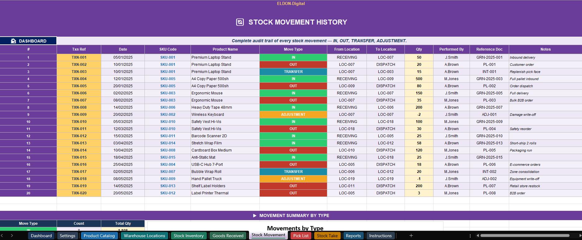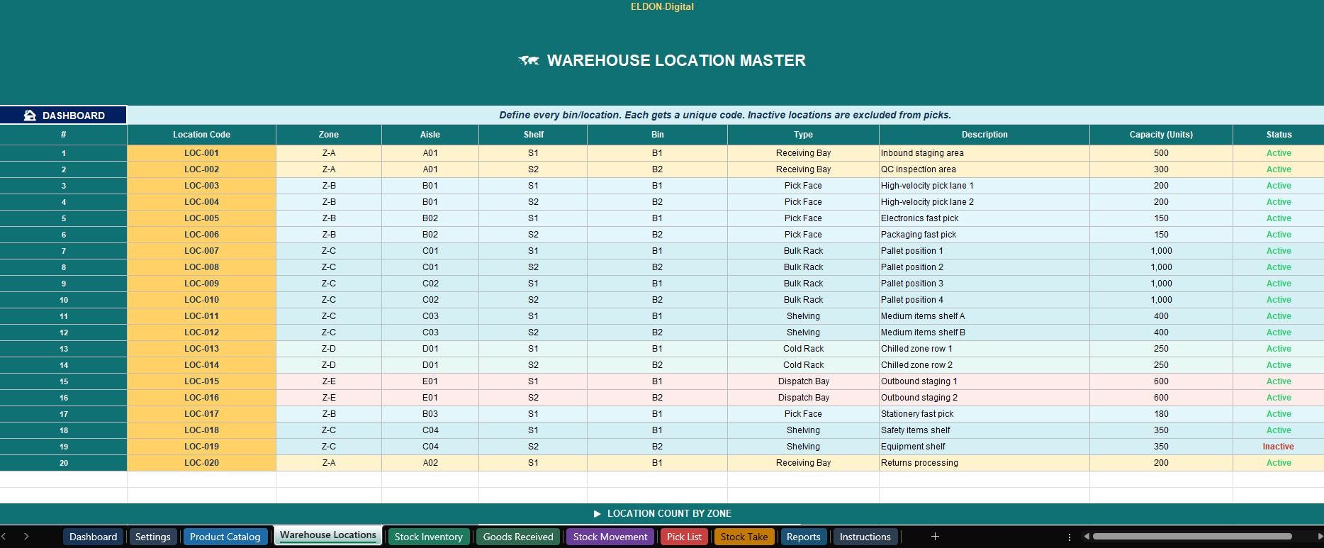 π¦ WAREHOUSE & STOCK LOCATION TRACKER -by ELDON-Digital The most complete warehouse management spreadsheet you'll find on Etsy.
