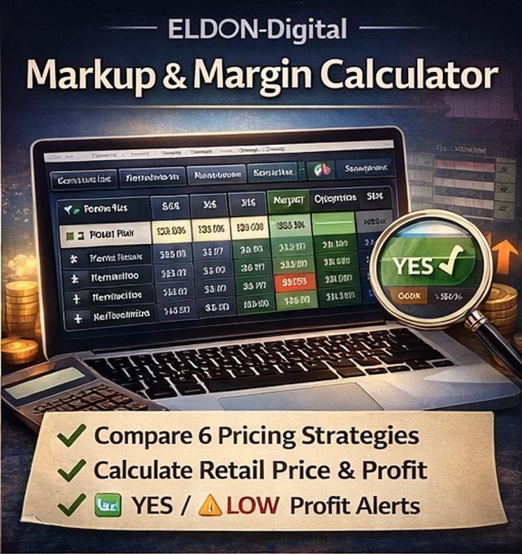 💎 Know Your Numbers. Price With Confidence. Profit Every Time. Introducing the ELDON-Digital All-in-One Pricing & Profit Calculator - the ultimate Excel toolkit built for makers, sellers, and entrepreneurs who are serious about profit.