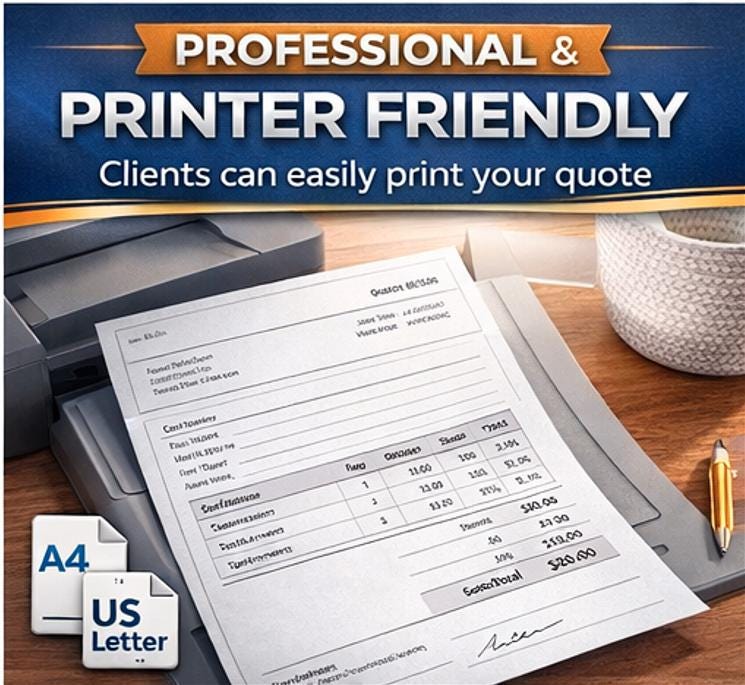 Your quotation is often one of the first documents a client sees. A professional quote helps you look more credible, more organized, and more serious about your work. This template helps you save time while presenting your prices in a clean and attractive way. It is especially useful for sellers who want a ready-made design that can be customized quickly without needing advanced Word skills. 🚀