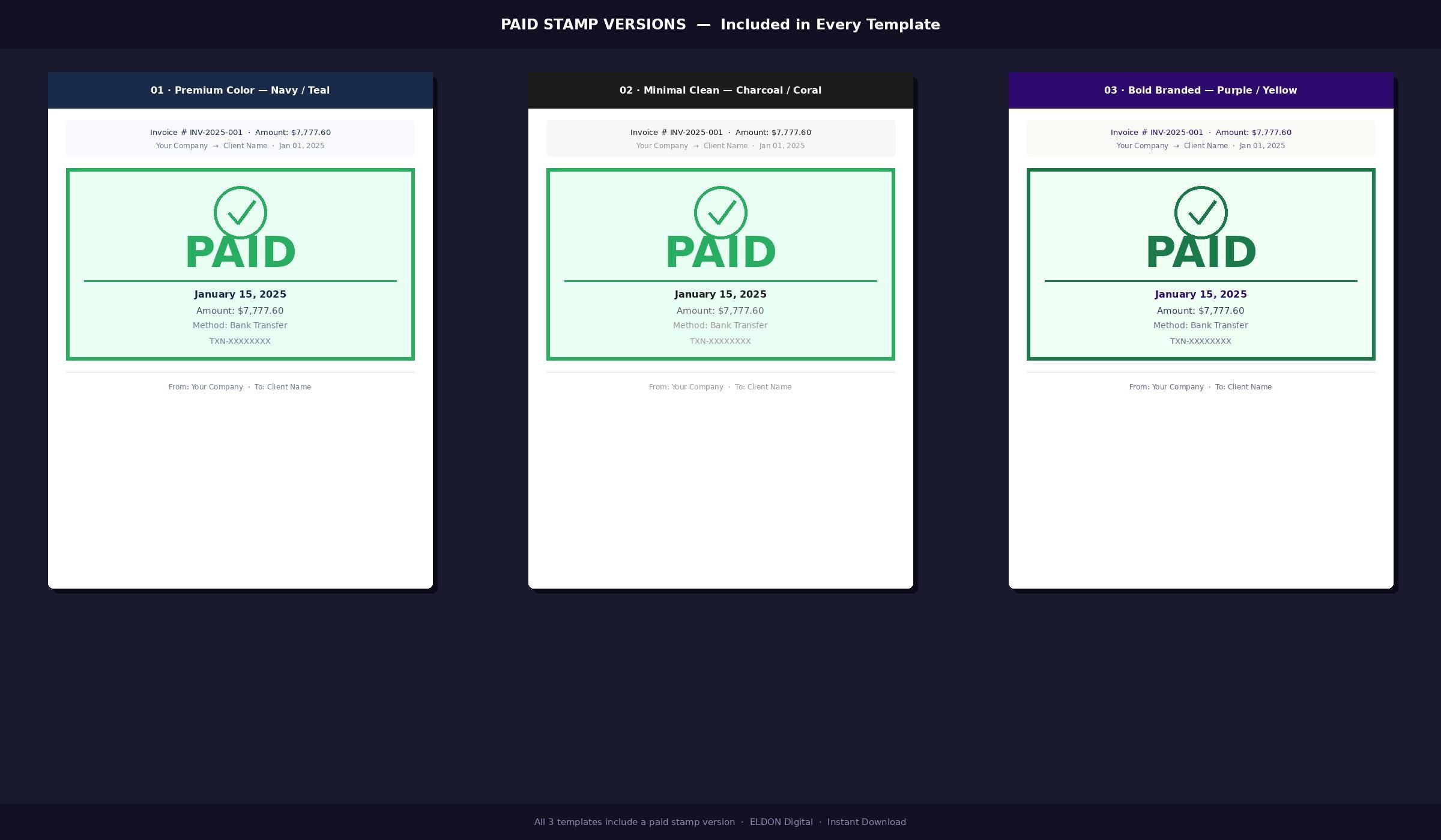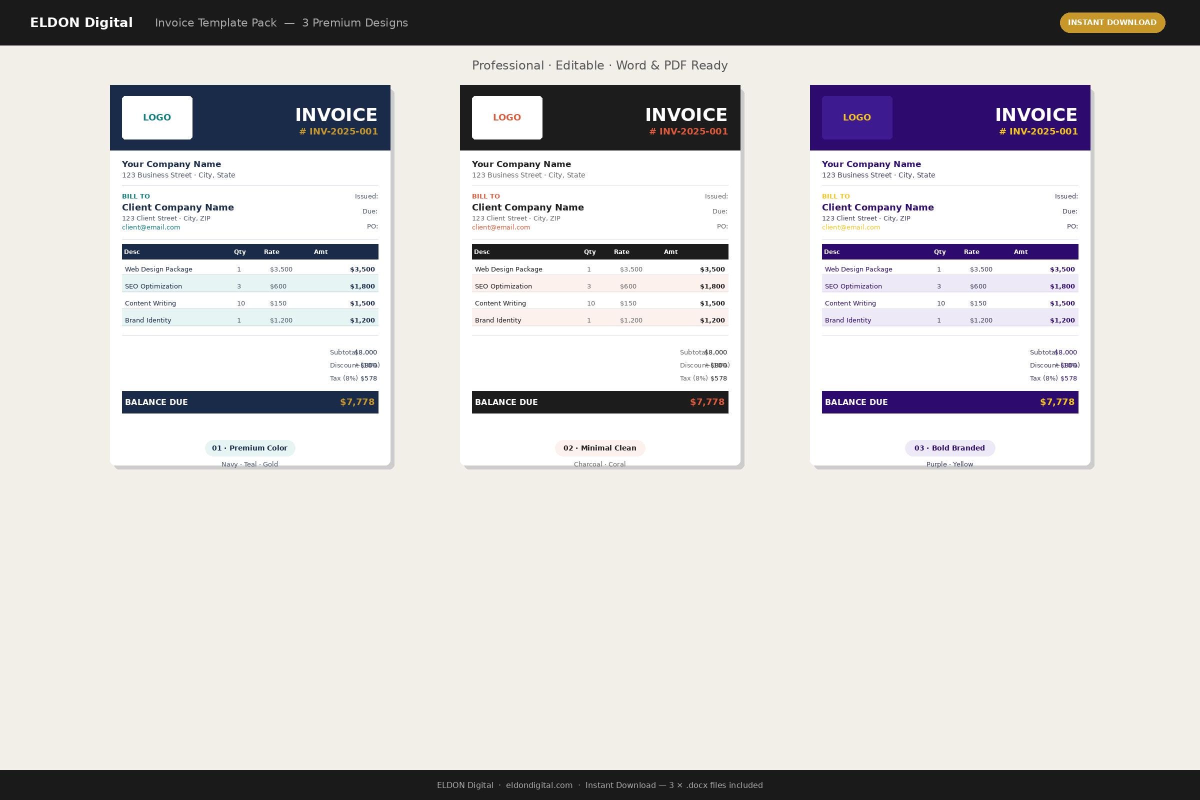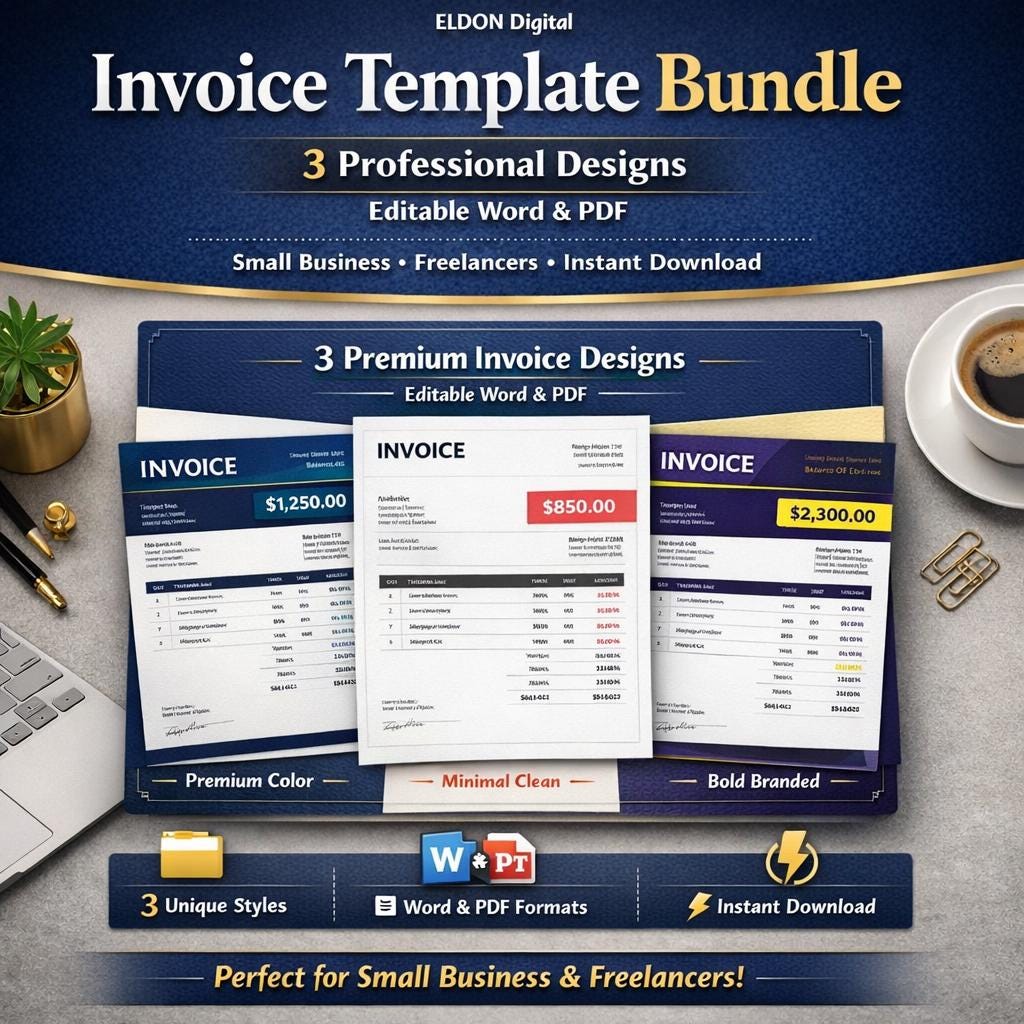 β¨ ELDON Digital Invoice Template Pack - 3 Premium Designs in One Bundle