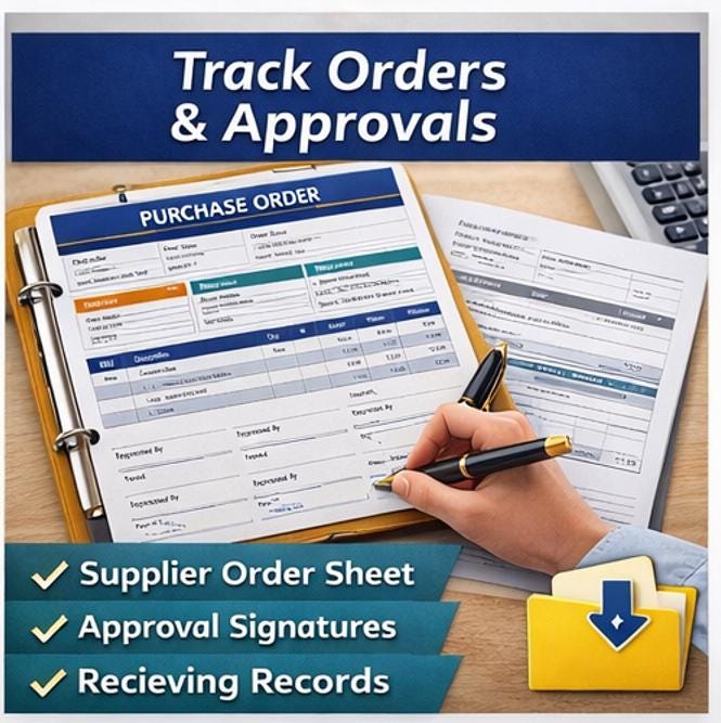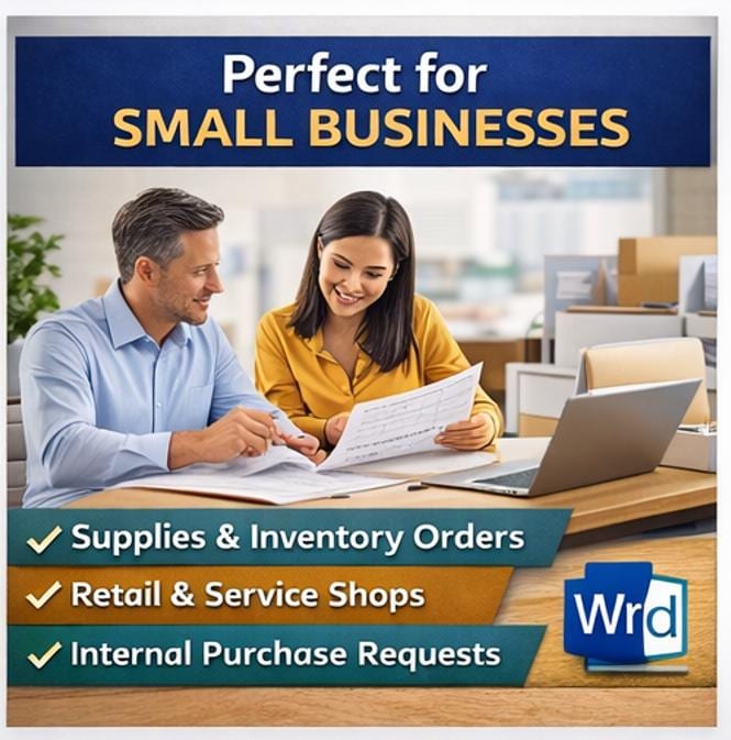 Whether you run a small business, retail shop, office, school, clinic, nonprofit, library, construction team, or purchasing department, this template gives you a clean, modern, and flexible solution for managing supplier orders, internal purchase requests, approvals, and receiving records in a professional format. 💼📝