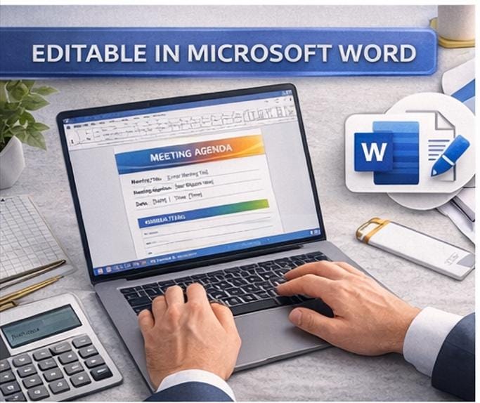 Plan clearer, more organized, and more productive meetings with this beautifully designed Meeting Agenda Template for Microsoft Word. This premium template is perfect for business owners, managers, teams, consultants, coaches, educators, and professionals who want a polished and easy-to-edit agenda document for meetings of any type. 📋💼