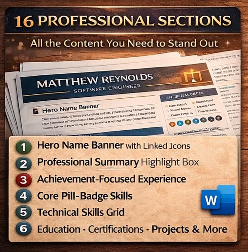 📋 16 Comprehensive Sections - Everything a hiring manager expects to see,