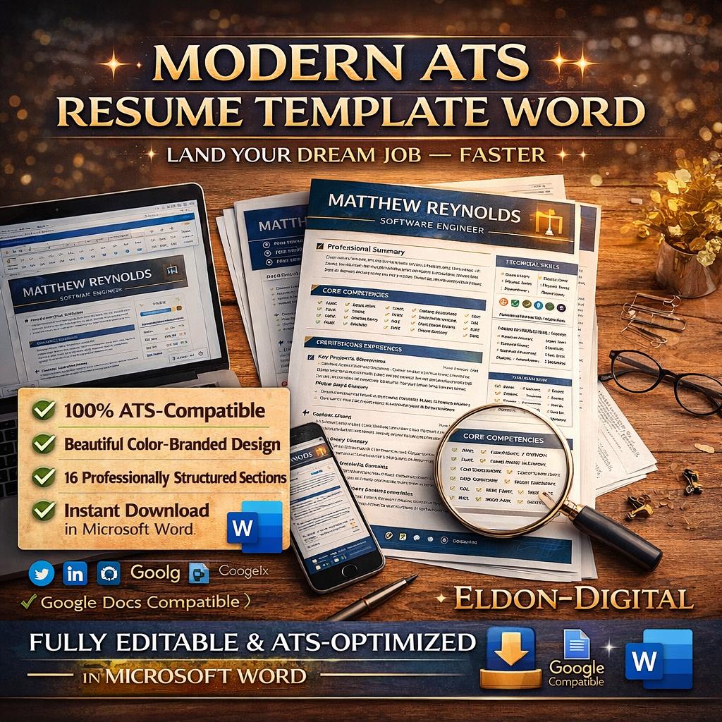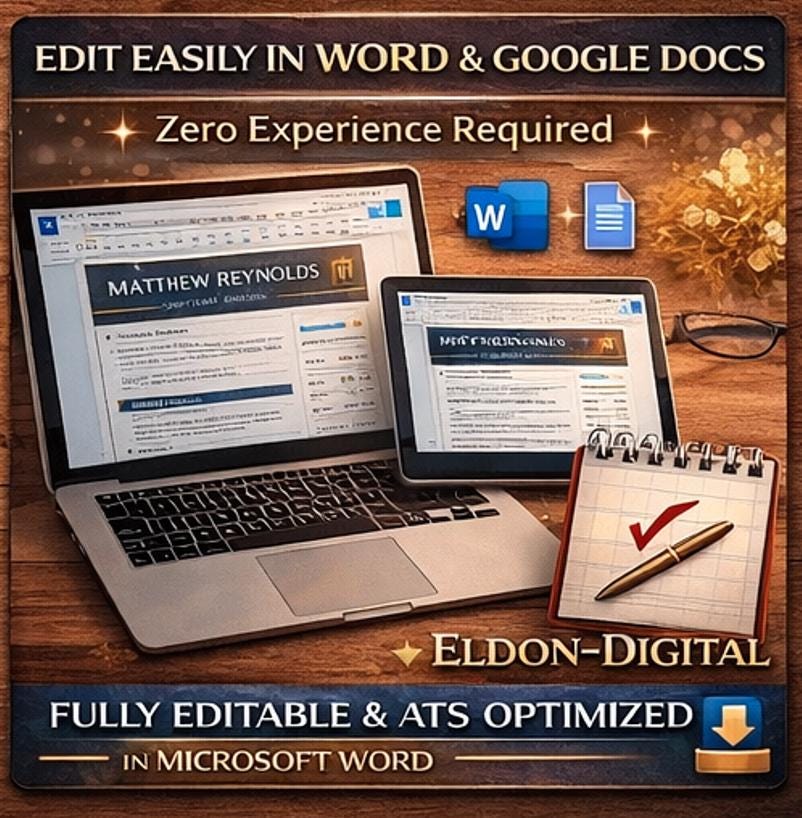 fully editable Microsoft Word document built to pass Applicant Tracking Systems