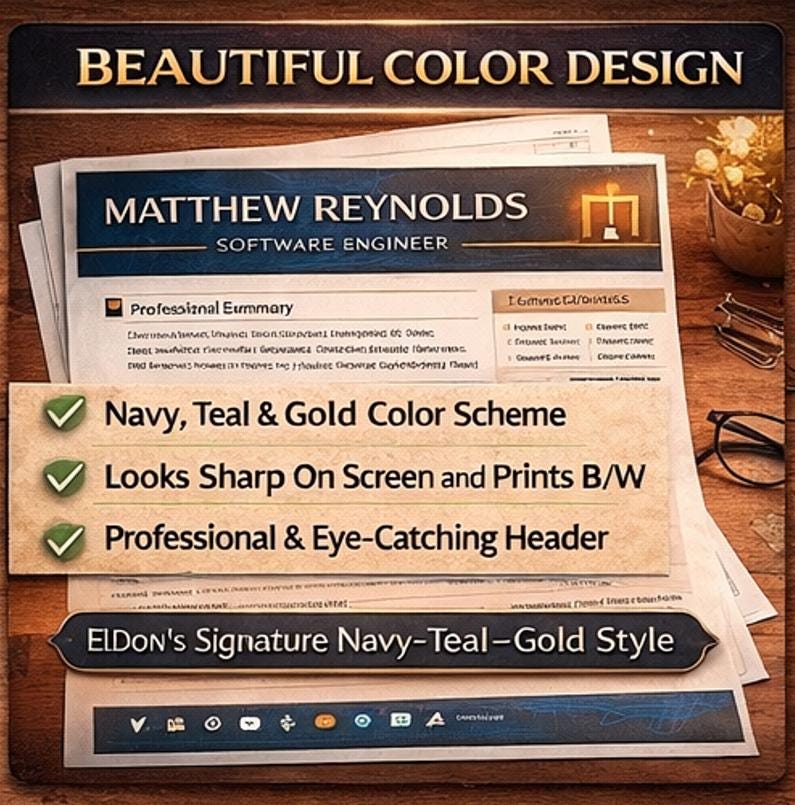 🎨 Beautiful Color-Branded Design - Sophisticated Navy, Teal & Gold color system